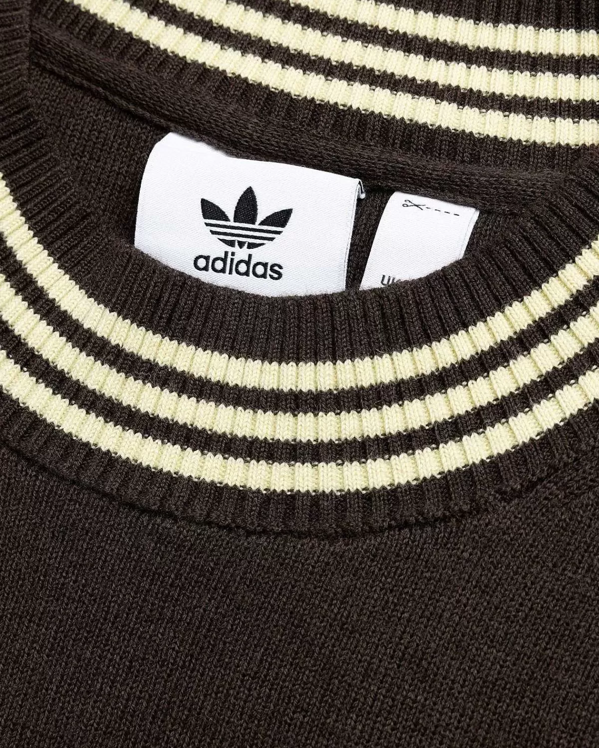 Striktoppen Fra Adidas Og Wales Bonner Er Produceret I Et Blødt Genbrugspolyester- Og Uldblandingsstof. Den Er Skåret …
