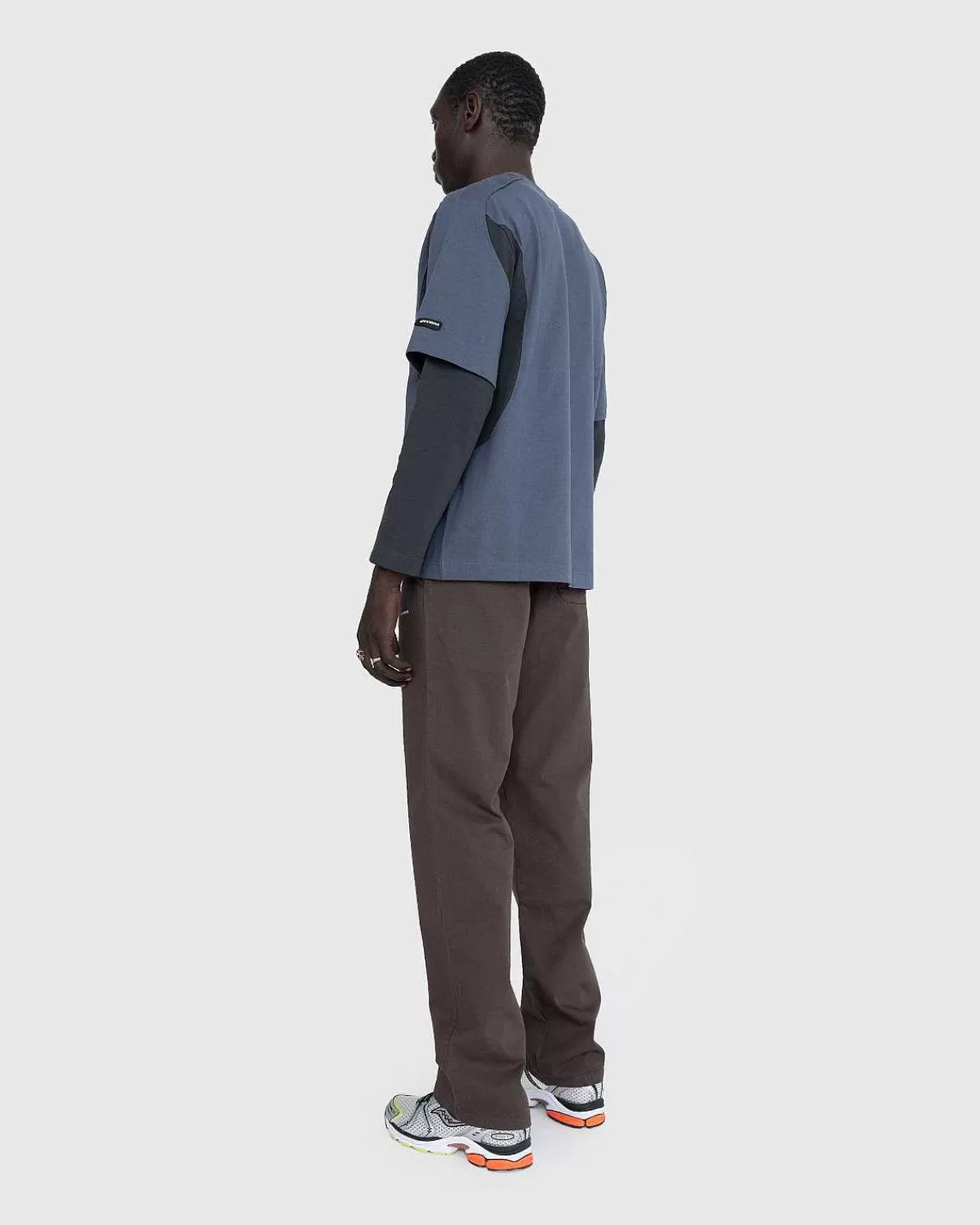 T-Shirten Med Dobbelte Ærmer Er En Iøjnefaldende Stil, Der Er Konstrueret Af Et Kraftigt Bomuldsstof. Denne Sæson Ankommer Tøjet I En Indbydende Dæmpet Blå Farvevariant, Med Silikonebranding På Venstre Ærme. Det Afslappede Stykke Er Defineret Af Dets Dobbeltlagsærmer Og Er Detaljeret Med En Ribbet Rund Hals, Underarms Halvmånekile Og En Skjult Sikkerhedslomme Ved Venstre Skulder.