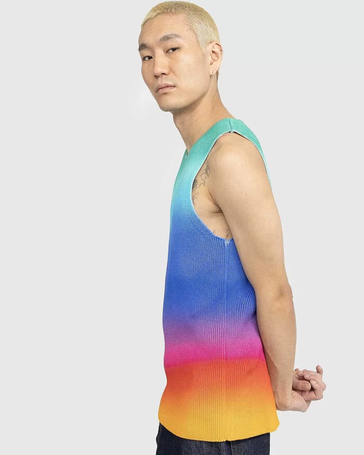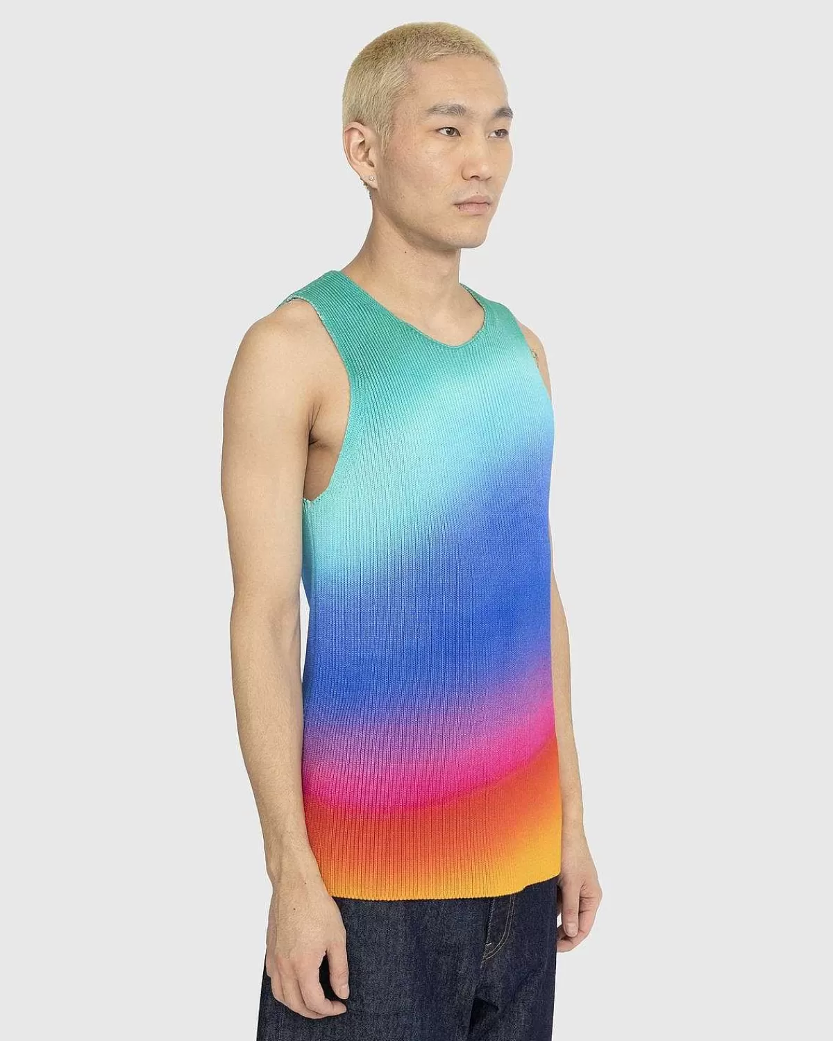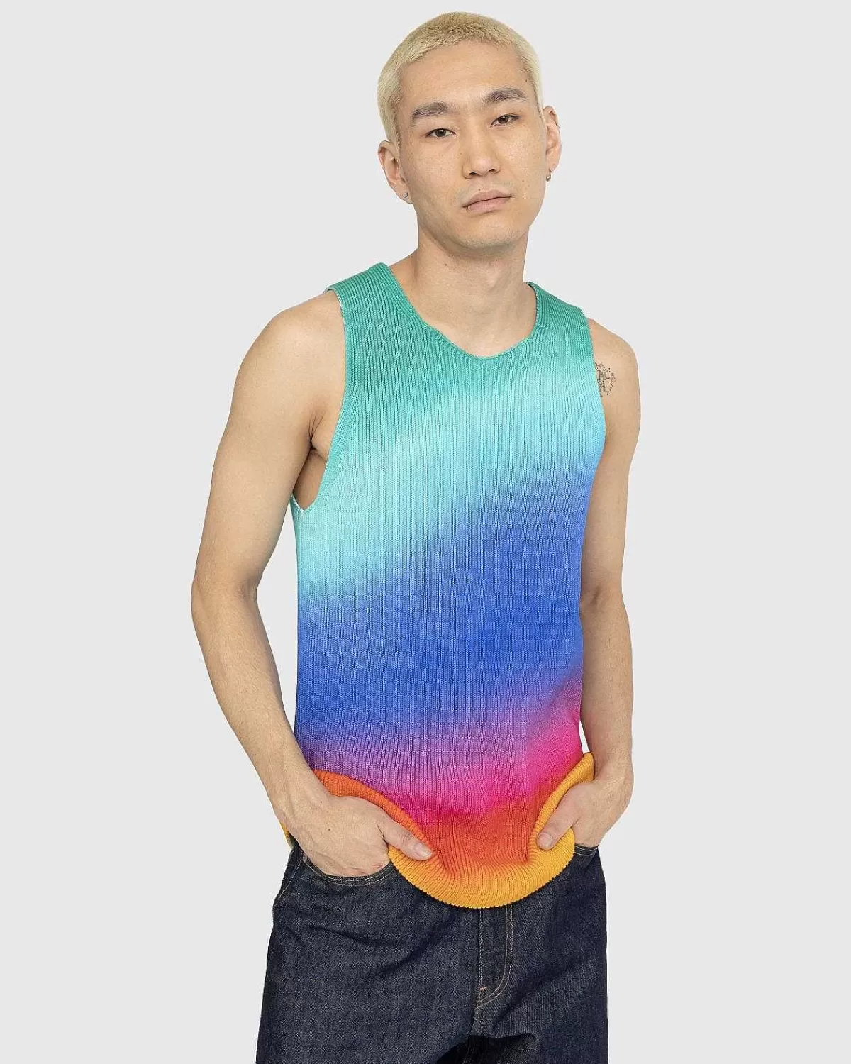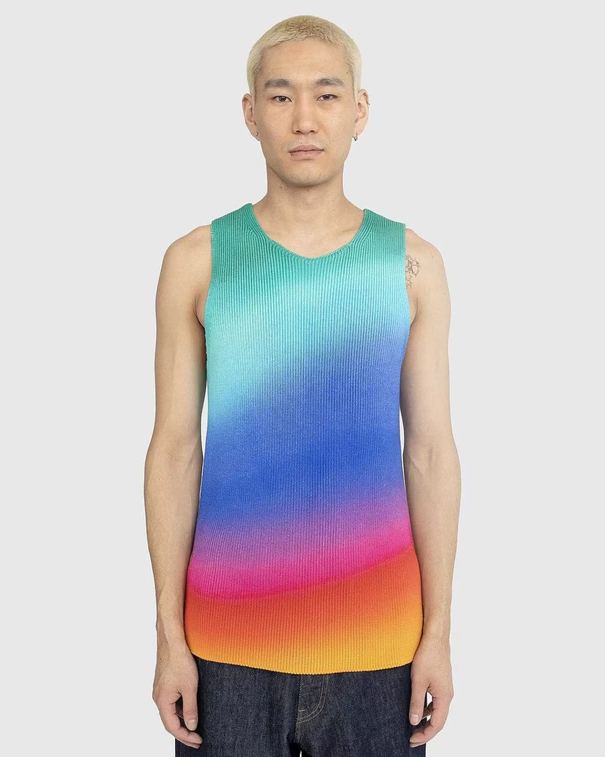 Agrs Luksusstrik Er Kendetegnet Ved Dristige Farver Og Materialer Af Høj Kvalitet. Stilarter Som Wellness-Tanktop Trækker Fra Mærkets London-Rødder Og Byens Forskelligartede Kultur, Alt Imens De Udfordrer Traditionelle Striktemaer. Denne Ærmeløse Top Er Lavet Af Et Ribstrikket Bomuldsstof Og Har Et Livligt Ombre-Printdesign, Der Øjeblikkeligt Vil Sprøjte Farve Ind I Din Garderobe. Den Har En Rund Halsudskæring Og Er Skåret I En Standard Tankpasning.