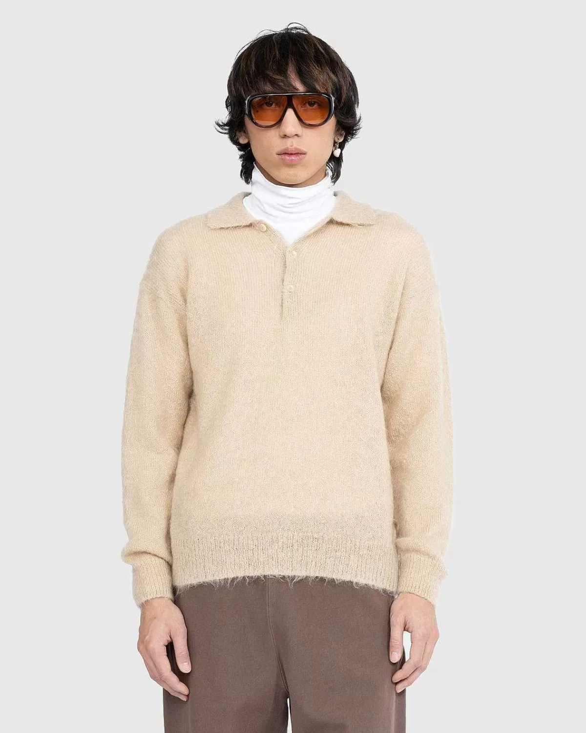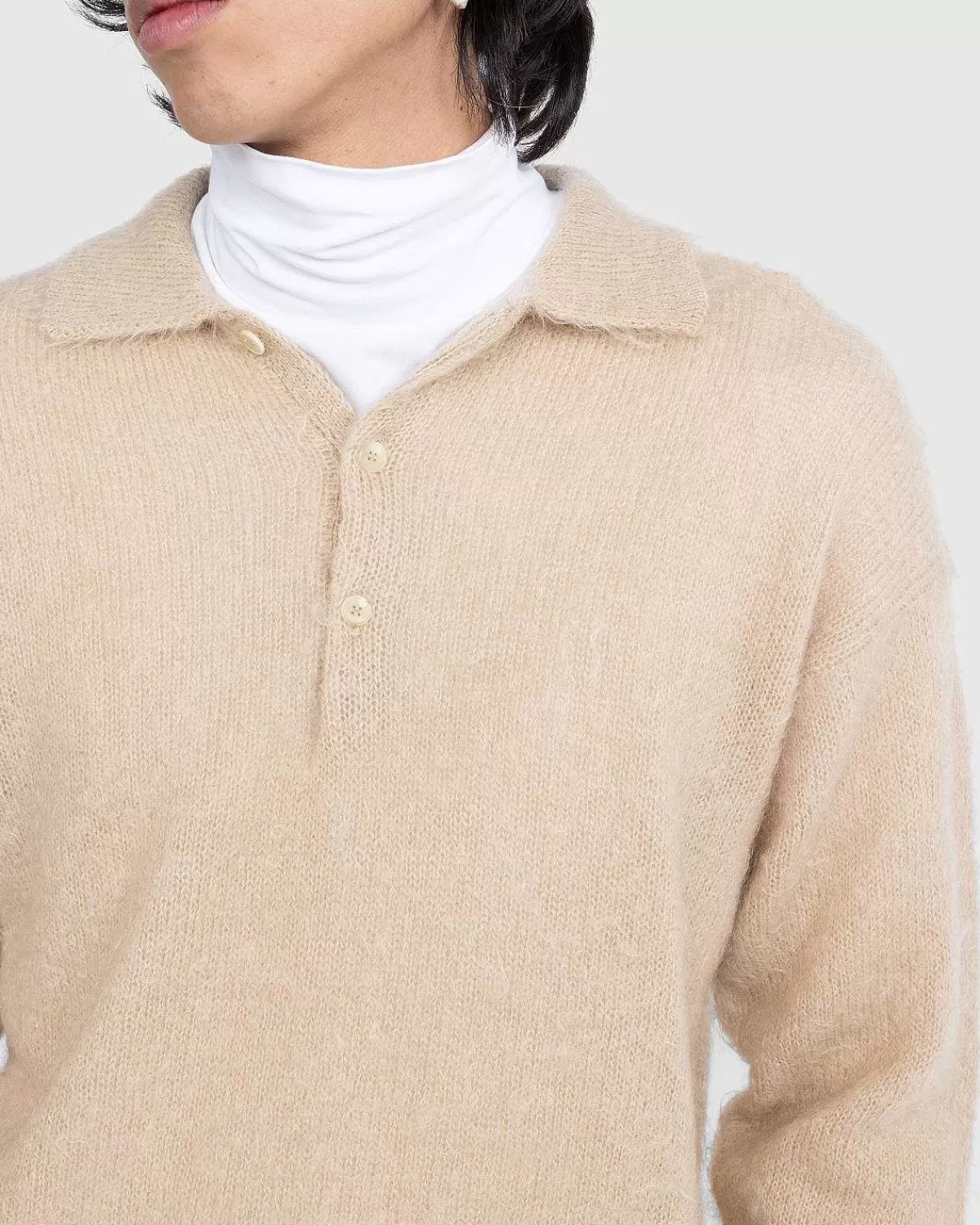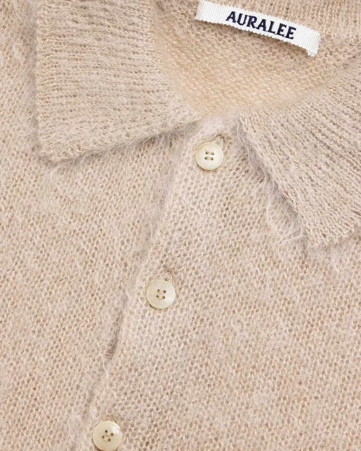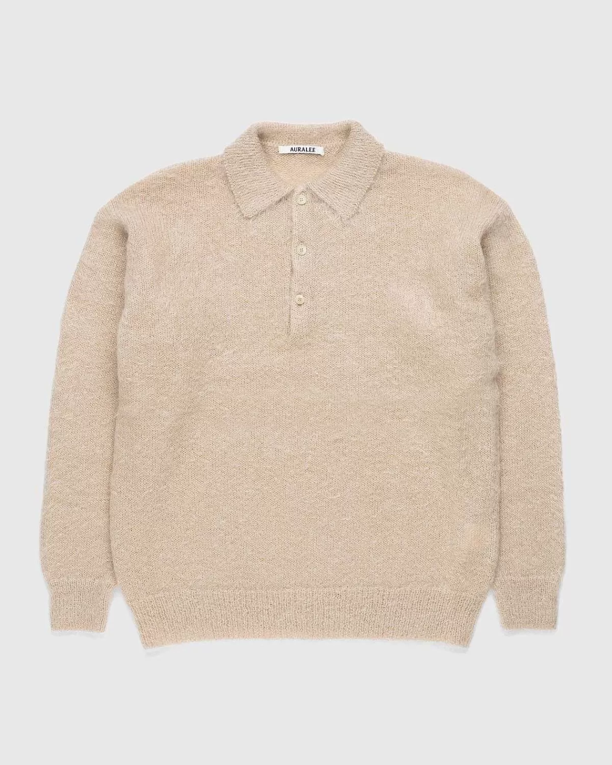 T-Shirts>Auralee Borstet Mohair Strik Polo Beige