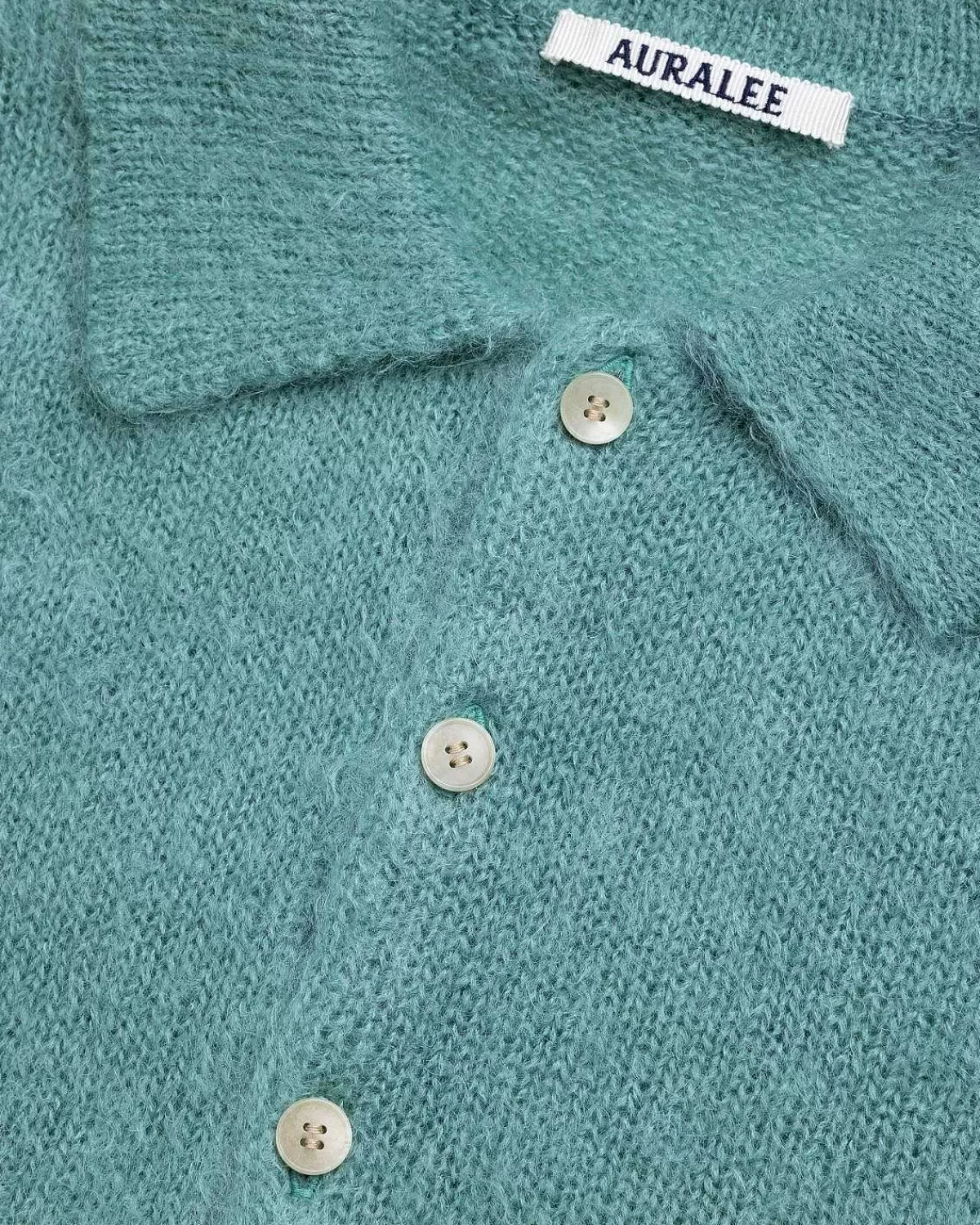 T-Shirts>Auralee Borstet Mohair Strik Polo Jade Gron