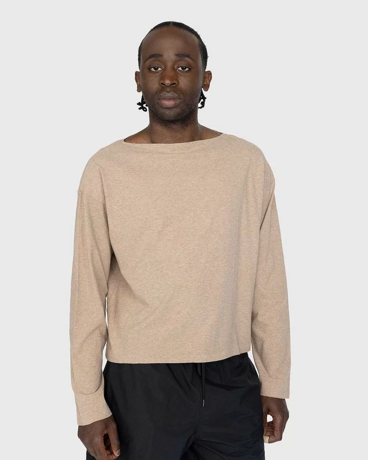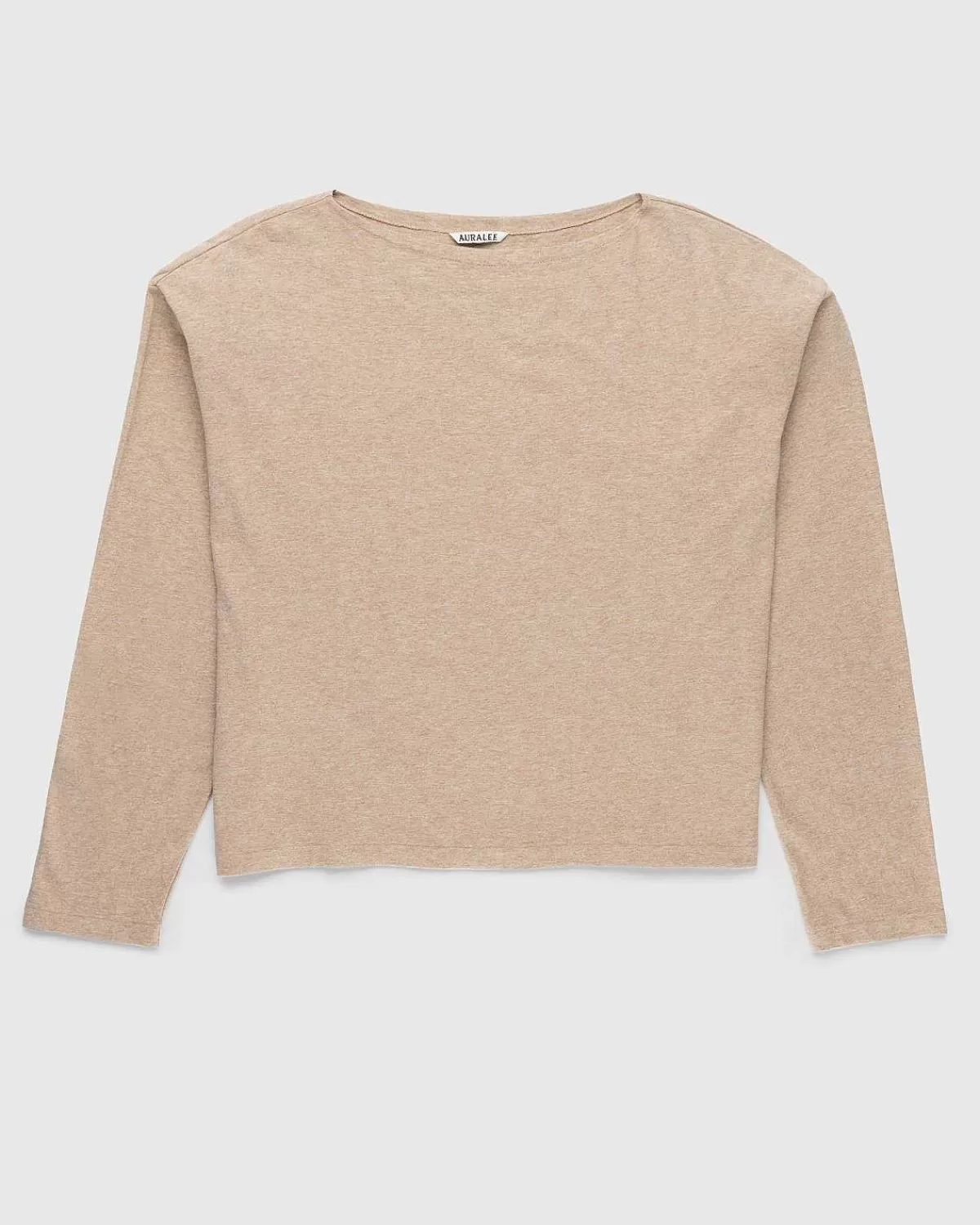 Denne Auralee Langærmet Er Produceret I Et Blødt Jerseystof Lavet Af Dobbeltrækket Ultralangkornet Bomuld, Strikket På En Maskine Med Høj Gauge. Beklædningsgenstanden Har En Blank Og Glat Tekstur På Grund Af Råmaterialer Af Høj Kvalitet Og En Speciel Farvningsproces, Da Den Kommer I Neutrale Farver For Ubesværet Matchning Fra Sæson Til Sæson.