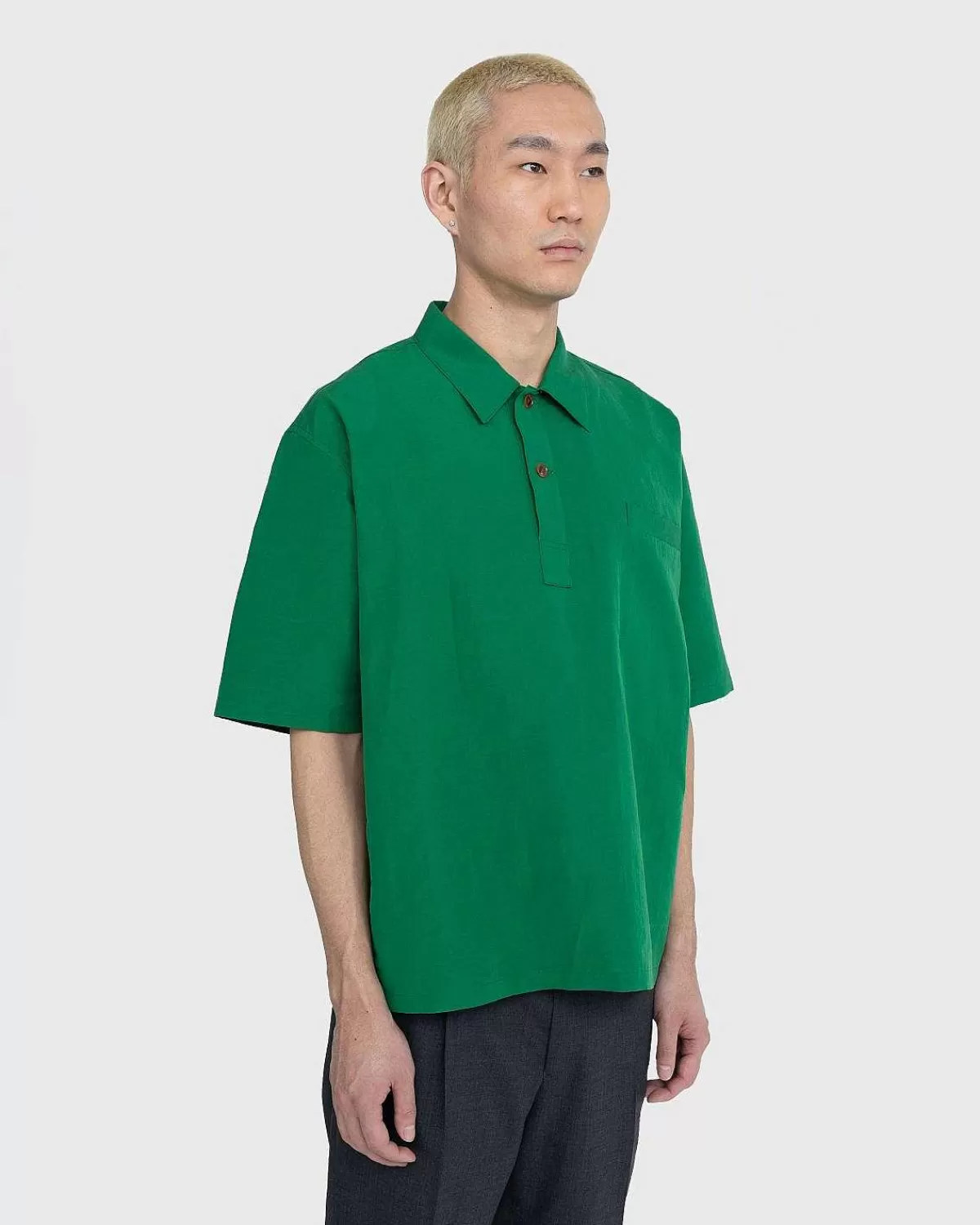 Auralee’S Finx Linned Vejr Skjorte Er Designet Til At Styrke Din Varme Vejr Garderobe. Den Er Lavet Af En Blanding Af Hør Og Bomuld, Tætvævet Med Fint Finx-Bomuld Til Kædetråden Og Belgisk Linned Til Skud. En Speciel Vask Giver Tøjet En Naturlig Fylde Og Drapering, Mens Det Farvede Garn Skaber En Dyb Farve. Skåret I En Let Overdimensioneret, Boxy Pasform, Stilen Tilbydes I En Fed Grøn Farvevariant Til Et Levende Forårs- Og Sommerlook.