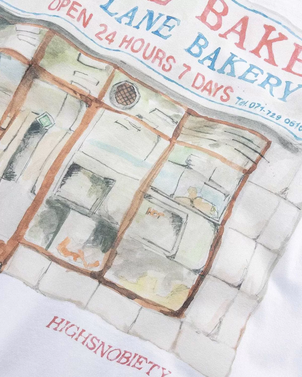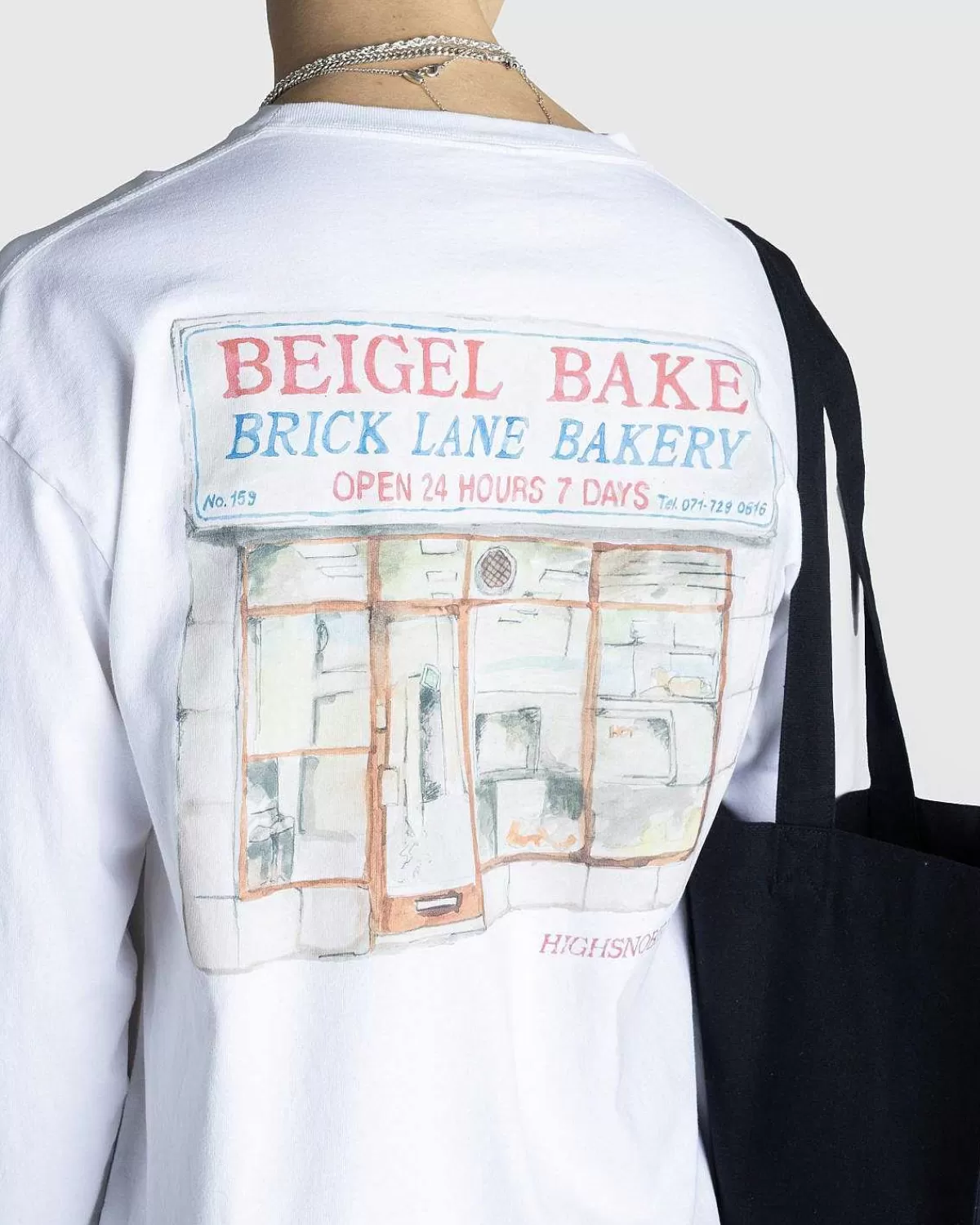 Denne Langærmede T-Shirt Ankommer Som En Del Af Vores Ikke I London-Kollektion Og Hylder Det Berømte East End Bakery, Beigel Bake. T-Shirten Har Et Akvareltryk Af Bageriet På Bagsiden Sammen Med Broderede Logoer På Brystet.