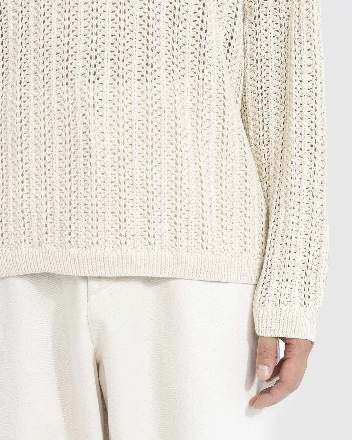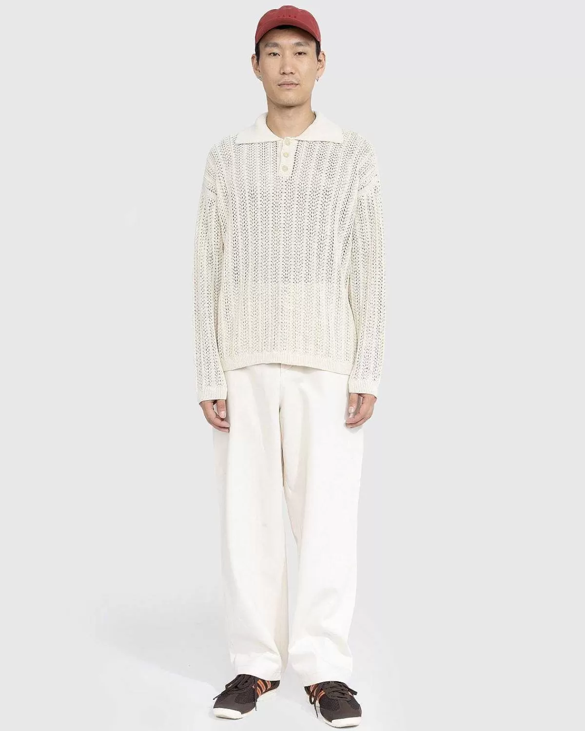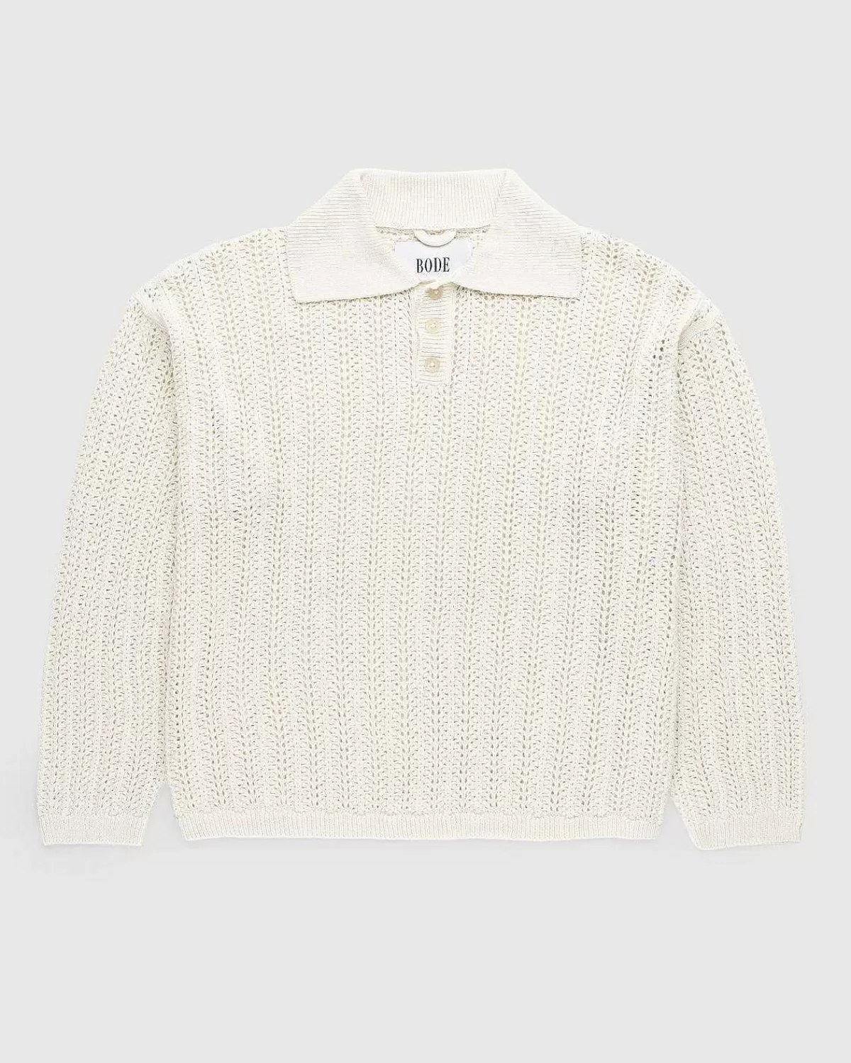 Bodes Pointelle Polo Er En Sæsonbestemt Langærmet Stil, Der Henter Inspiration Fra Et Par Blondehandsker, Der Går Tilbage Til 1940’Erne. Stykkets Originale Strikmønster Er Igen Replikeret Til Bode-Beklædningen, Som Er Produceret I Et Mellemvægts Bomuldsgarn. Skjorten Giver Et Halvgennemsigtigt Look Med Tre-Knapslukning.