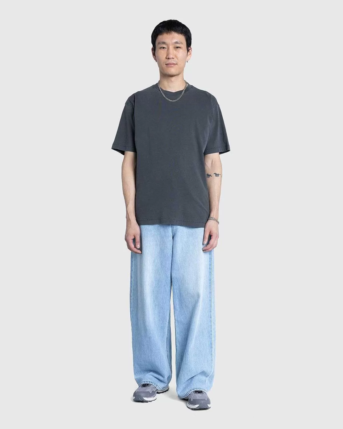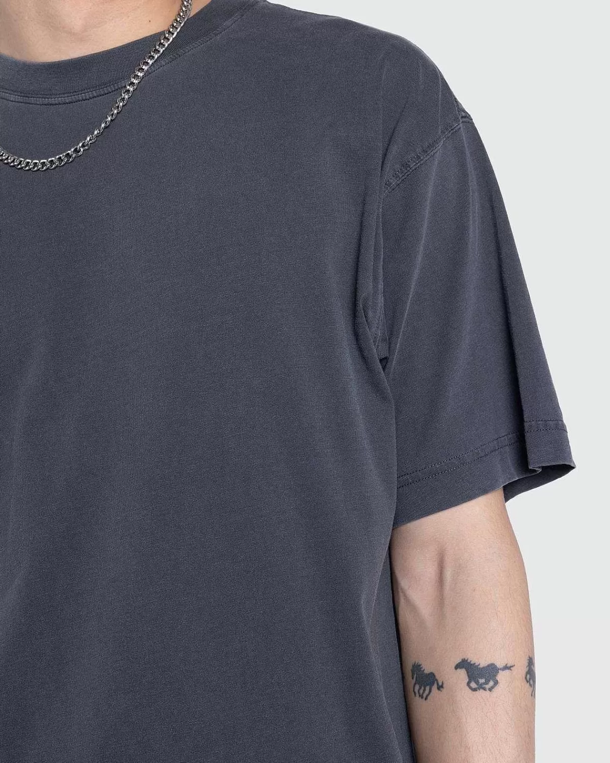 Klitten Er En Monokromatisk T-Shirt-Stil Skåret Til En Løs Pasform Fra Let Bomuldstrøje. Det Er Beklædningsfarvet For At Sikre En Blødere Fornemmelse Og Kompleks Farvekonfiguration. Detaljer Inkluderer En Ribkantet Rund Hals Og En Lige Søm, Da Stykket Er Minimalt Mærket Med En Vævet Flagetiket Ved Venstre Sidesøm.