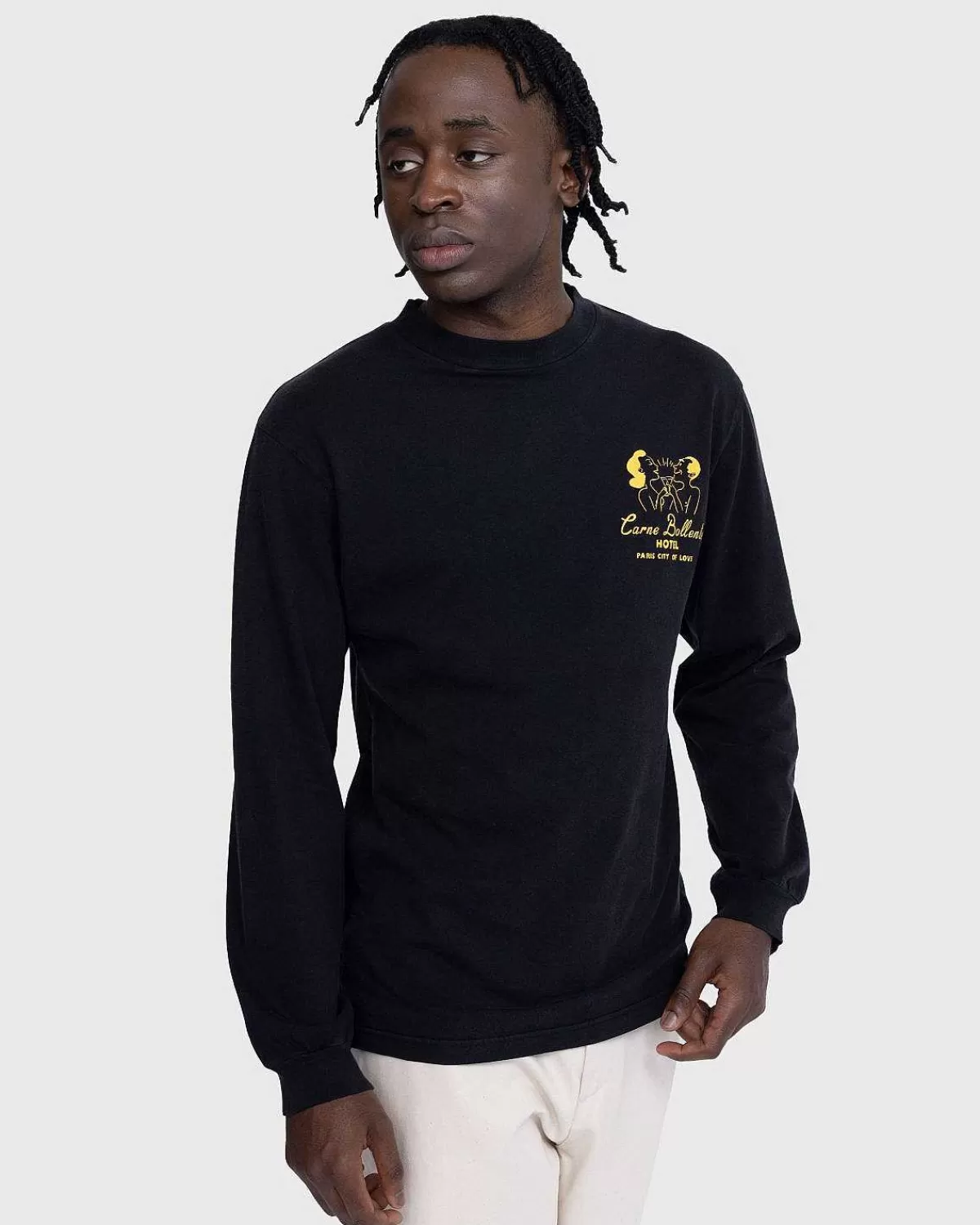 Som Alle Carne Bollente-Stile Er Carne Love Hotel Longsleeve Kendetegnet Ved Sex-Positive Kunstværker, Der Opmuntrer Folk Til At Omfavne Deres Egen Seksualitet Og Kinks. Designet Parrer Et Alsidigt Streetwear-Hæftetøj Med En Scenisk Sexillustration, Der Sprøjter En Smule Legende Energi Ind I Det Forhøjede Basic. T-Shirten Er Konstrueret Fra 100 % Økologisk Bomuld Til Mindre Miljøpåvirkning, Og Er Unisex Med Screentrykt Kunstværk Implementeret På Forsiden Og Bagsiden.