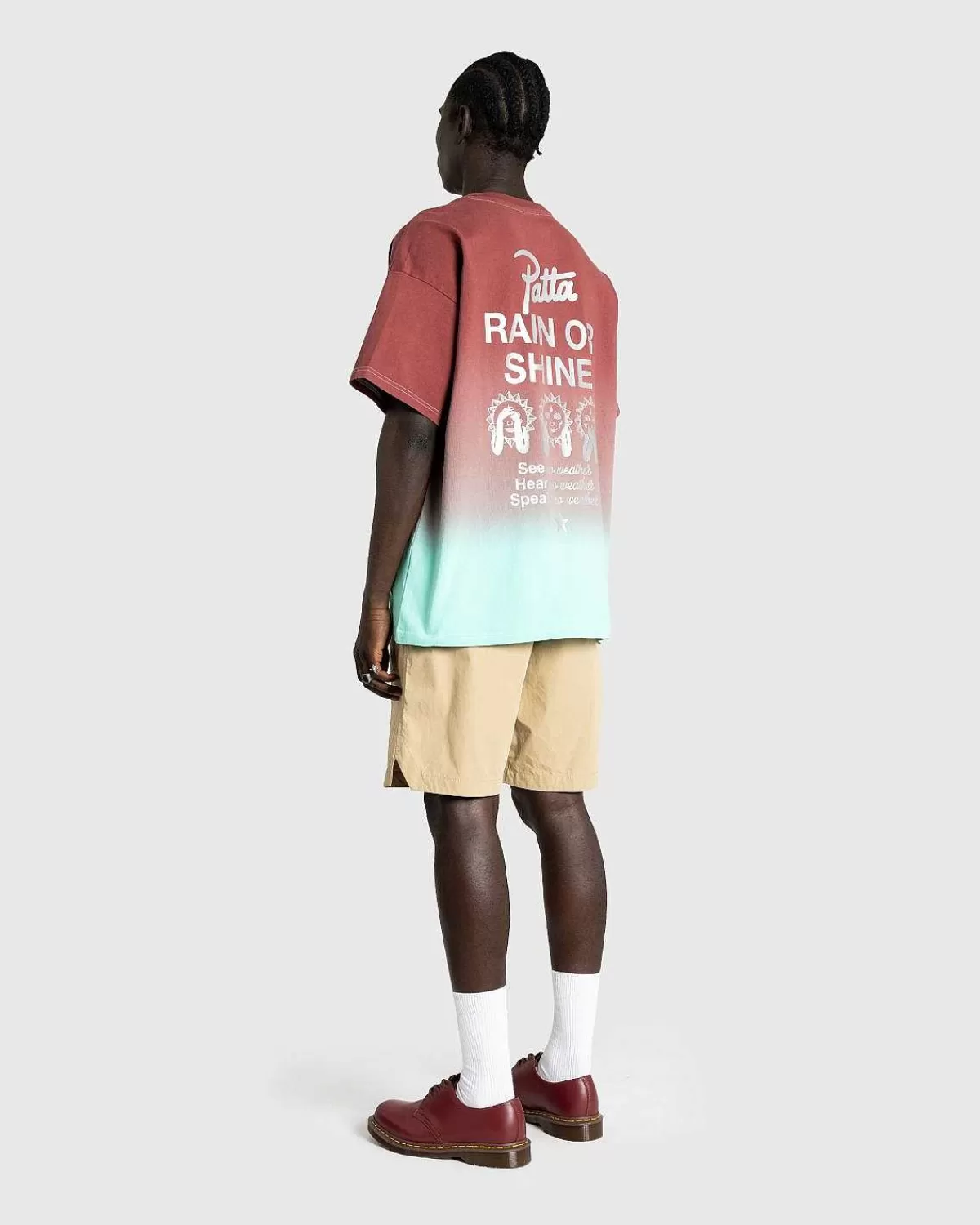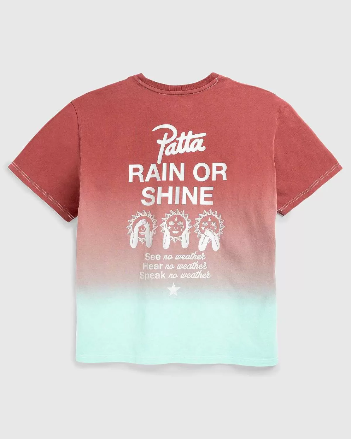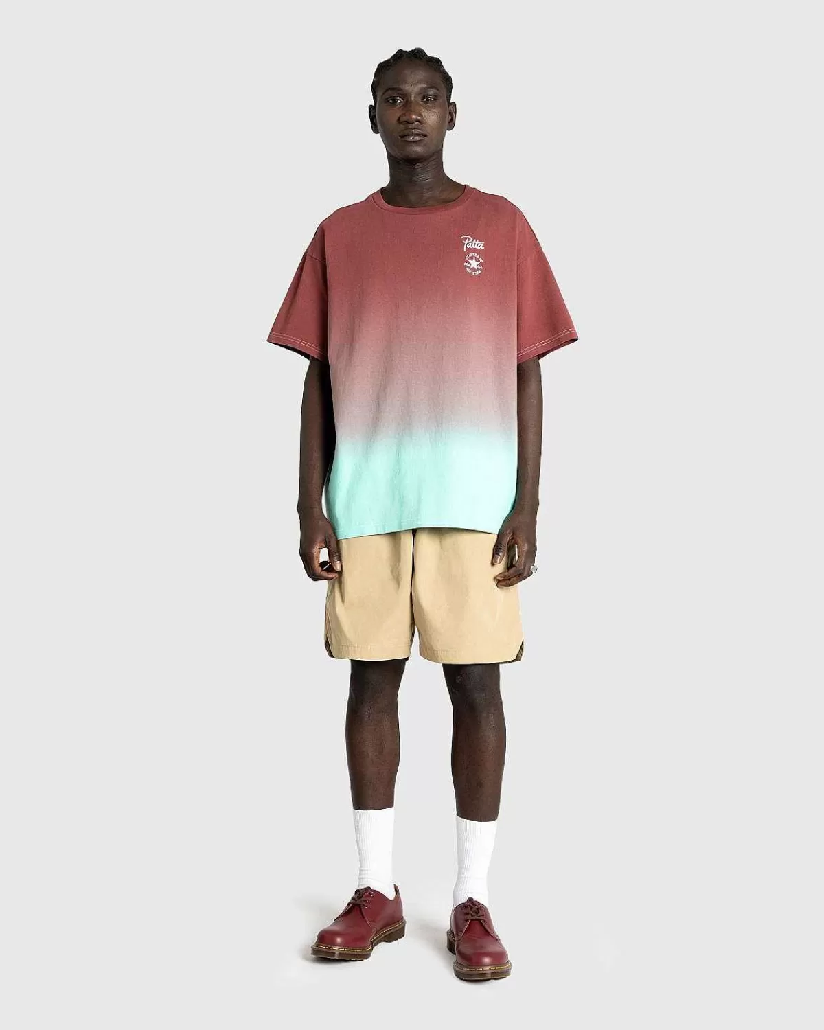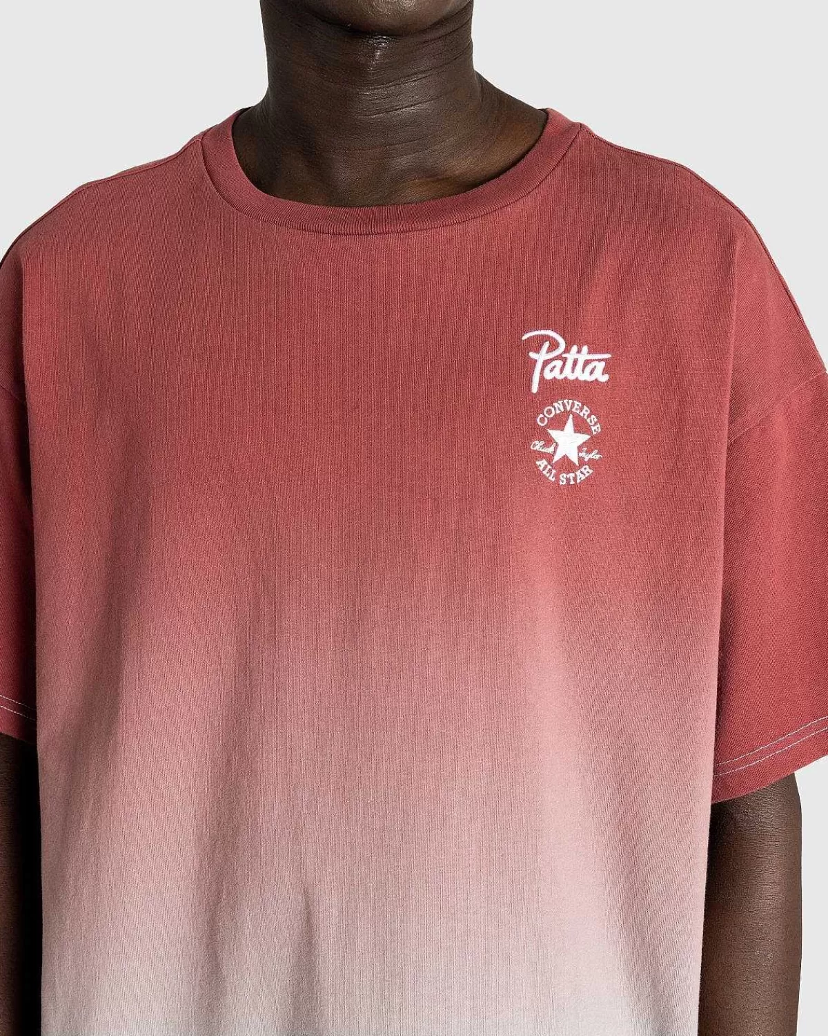 Converse Og Patta Er Tilbage Med Deres Nye “Rain Or Shine”-Kollektion Med Nye Sneakers. Denne Samarbejds-T-Shirt Er Skåret I En Overdimensioneret Pasform Og Detaljeret Med Pattas Overordnede Gradientprint, Der Er Fremhævet Med Et Sølvlogo På Brystet.