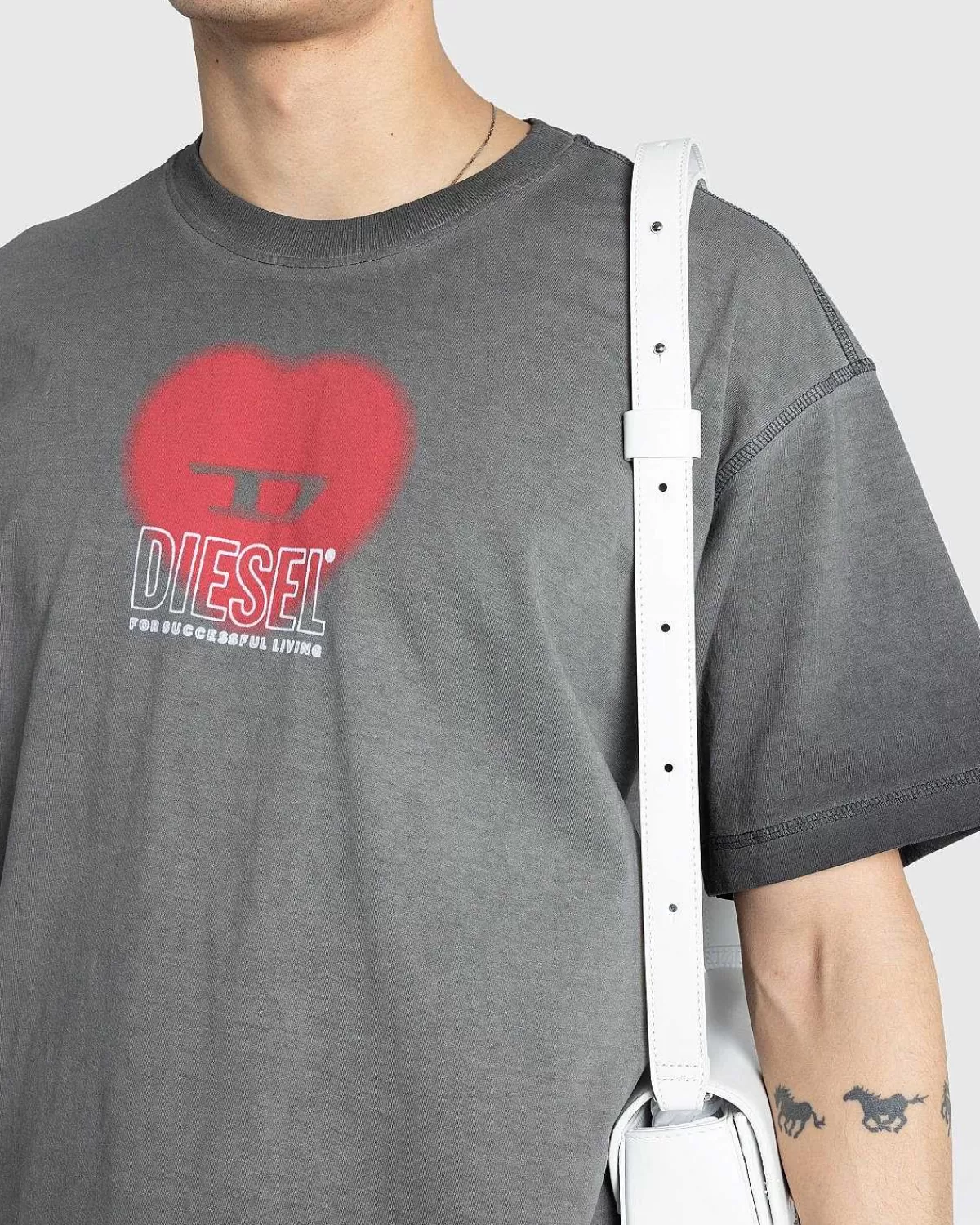 T-Buxt-N4 Er En Sæsonbestemt Grafisk T-Shirt-Stil Fra Diesel. Den Er Lavet Af 100 % Bomuld Og Skåret Til En Afslappet Pasform, Med Traditionelle Designelementer, Der Omfatter En Rund Hals Med Ribbet Strik, Faldede Skuldre Og En Lige Kant. Den Kortærmede Top Er Defineret Af Diesels Hjertelogo Og Komplementær Ikonografi Implementeret Foran Og I Midten.