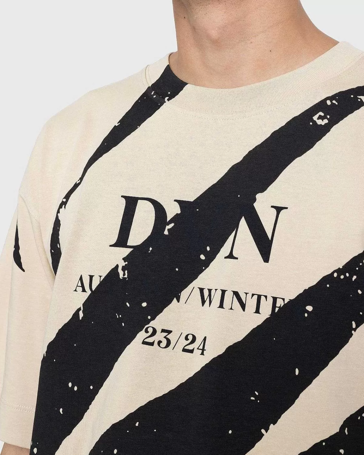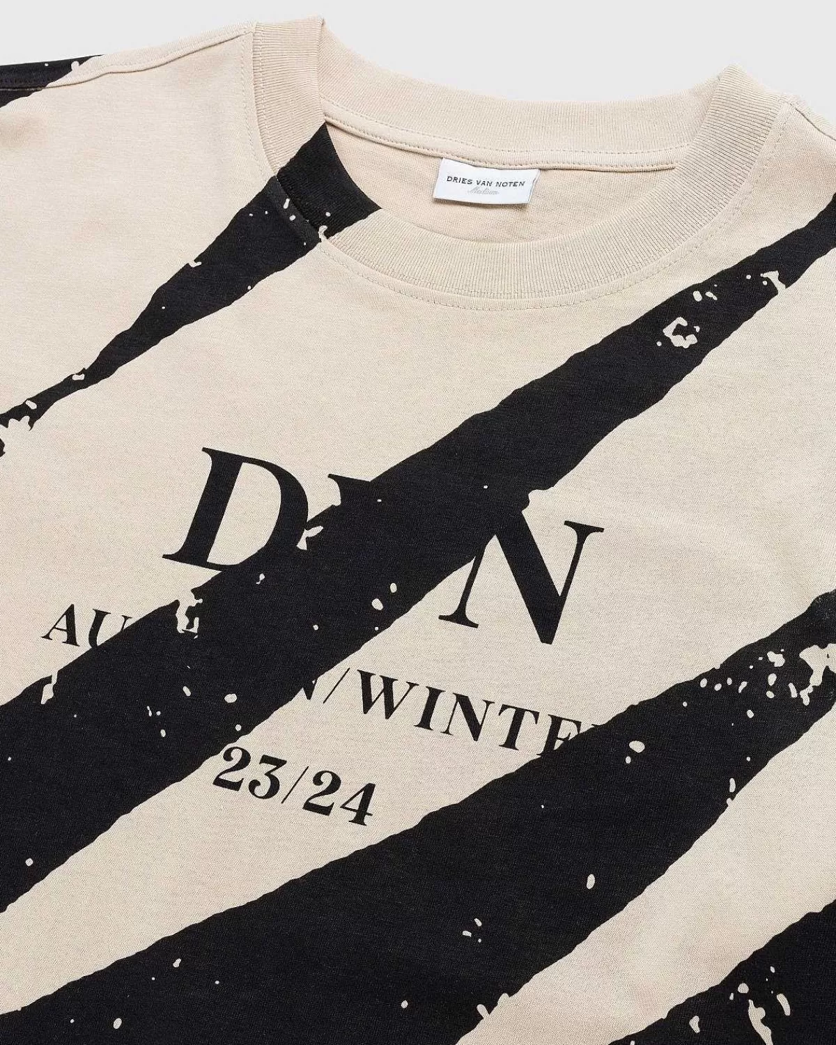 Dries Van Noten Og Hans Eponyme Label Vender Tilbage Med En Ny Sæson, Der Viser Dens Beherskelse Af Print Og Mønstre. Helli Pr ‘Show’-Trøjen Kommer Frem I En Tonal Beige Nuance Med Et Stort Grafisk Tryk På Tværs Af Fronten Og. T-Shirten Er Skåret I En Rummelig, Løs Pasform Til Alsidig Brug Og Har Designerens Initialer Trykt På Brystet, Hvilket Fremhæver Den Seneste Kollektion Sammen Med Et Ekstra Tryk På Bagsiden, Hvor Dens Aw23-Show Fandt Sted.