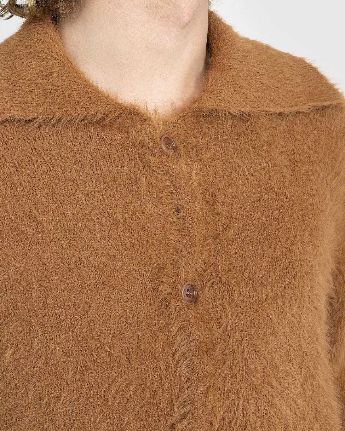 Merdan Strikken Er En Fuzzy Cardigan Produceret I 100 % Nylon. Sweateren Har Et Blødt Og Luftigt Ydre, Og Er Derefter Udstyret Med En Spredt Krave, Knaplukning Foran Og Båndede Manchetter Og Kant. Beklædningen Ankommer Denne Sæson I En Mørk Kamelfarve, Der Passer Til Gentagen Brug.