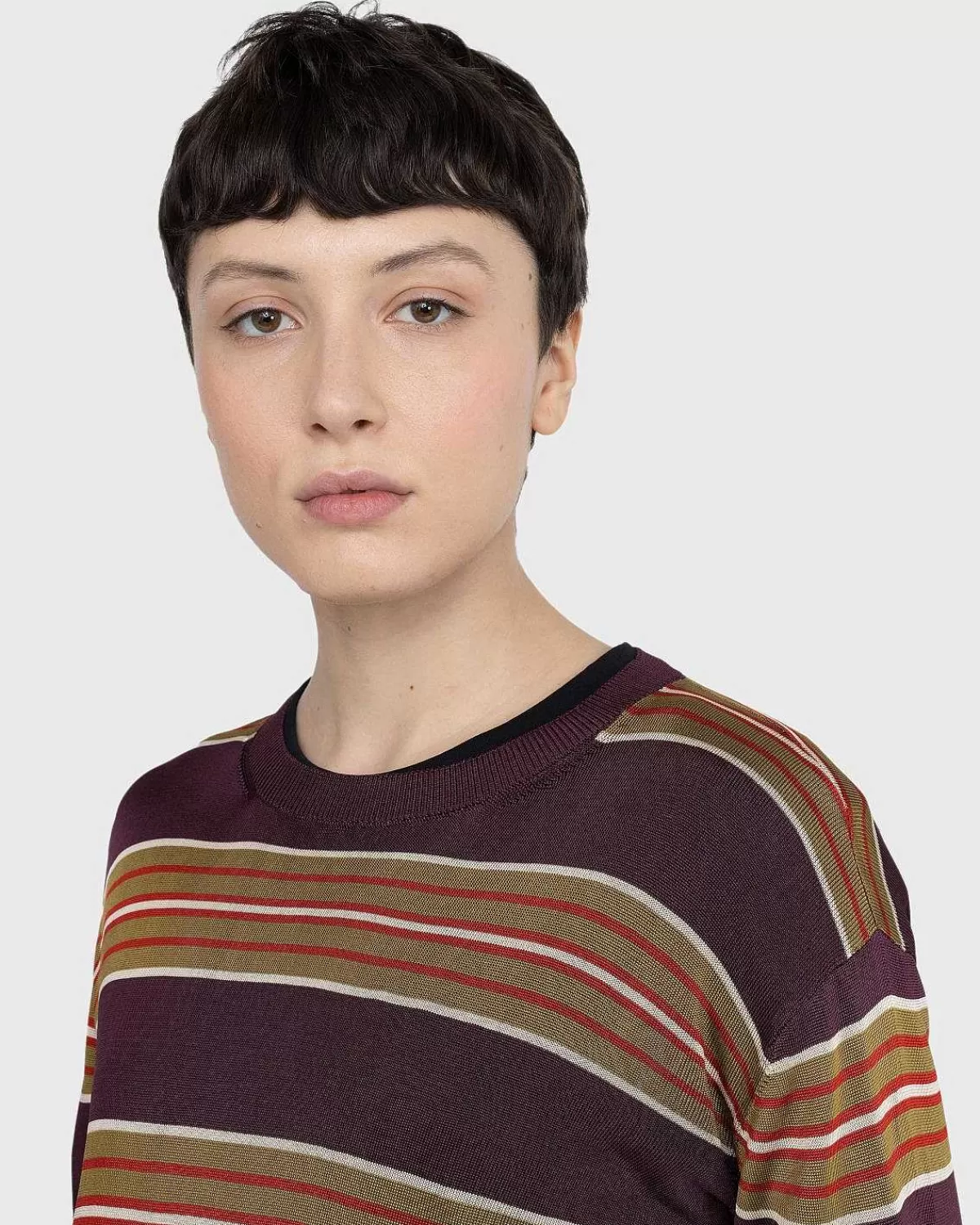 Dries Van Noten Er Her For At Tage Din T-Shirt-Kollektion Til Det Næste Niveau Med En Moden Stil Bygget Af Blød Viskose. Strikbeklædningen Fremhæver Den Belgiske Designers Kunstfærdige Beherskelse Af Mønstre, Da Den Er Prydet Med Et Farverigt Stribet Print. Detaljer Omfatter Ribkanter Ved Rund Hals, Manchetter Og Kant, Da Silhuetten Er Skåret Til En Traditionel Boxy, Afslappet Pasform.