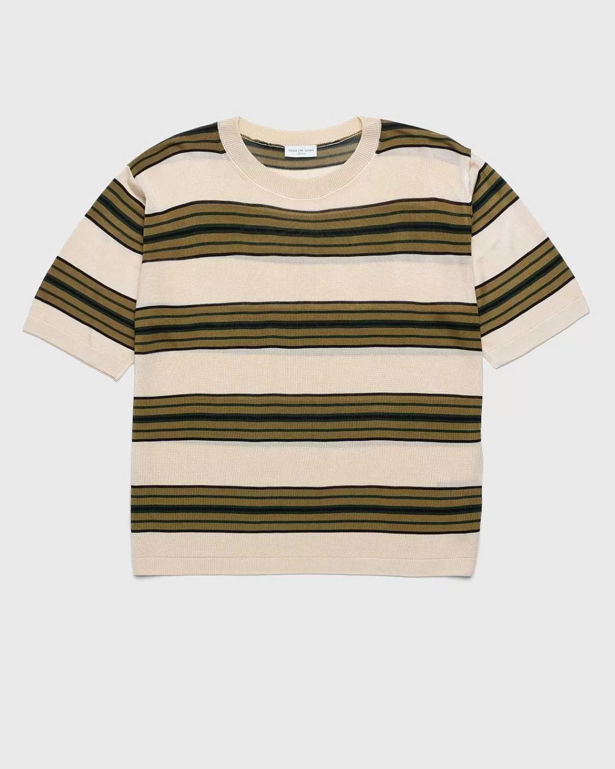 Dries Van Noten Er Her For At Tage Din T-Shirt-Kollektion Til Det Næste Niveau Med En Moden Stil Bygget Af Blød Viskose. Strikbeklædningen Fremhæver Den Belgiske Designers Kunstfærdige Beherskelse Af Mønstre, Da Den Er Prydet Med Et Farverigt Stribet Print. Detaljer Omfatter Ribkanter Ved Rund Hals, Manchetter Og Kant, Da Silhuetten Er Skåret Til En Traditionel Boxy, Afslappet Pasform.