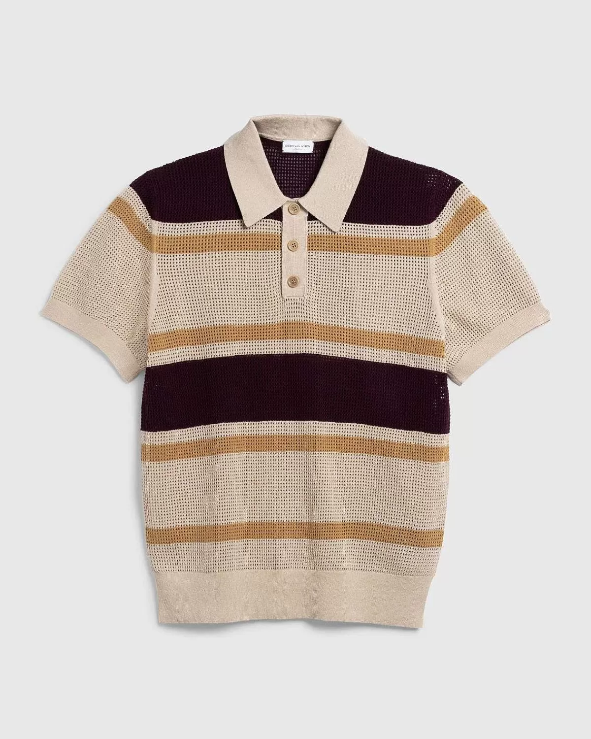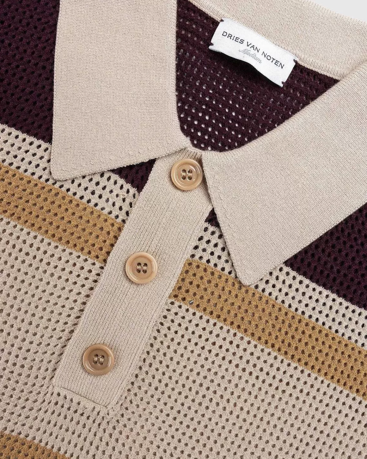 T-Shirts>Dries van Noten Mindo Strik Polo Beige/Striber
