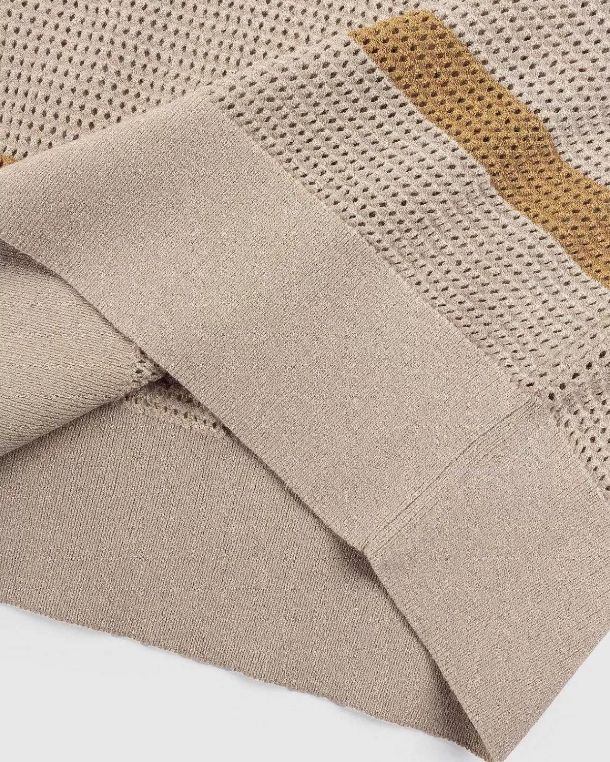 Mindo Er En Forhøjet Polostil Af Dries Van Noten, Der Ankommer Til Sæsonen I En Neutral Beige Farvevariation, Der Er Nem At Matche. Det Er Lavet Af Et Viskose-Polyester-Blandingsstof Og Fremviser Et Karakteristisk, Semi-Gennemsigtigt Look, Der Med Sikkerhed Vil Skille Sig Ud. Designdetaljerne Omfatter En Klassisk Polokrave, Lukning Med Tre Knapper Og Ribstrikkede Kantlister Ved Kraven, Ærmerne Og Forneden. Klæd Denne Op Eller Ned Efter Din Smag Hele Sæsonen I Varmt Vejr.