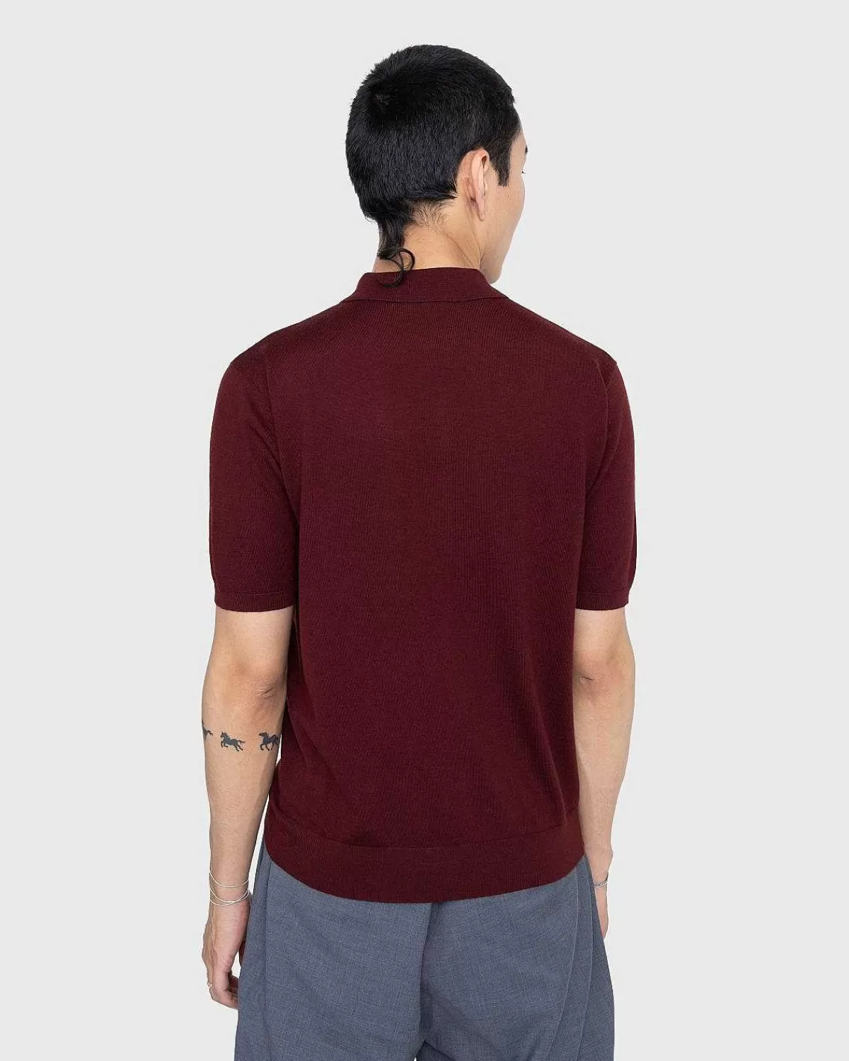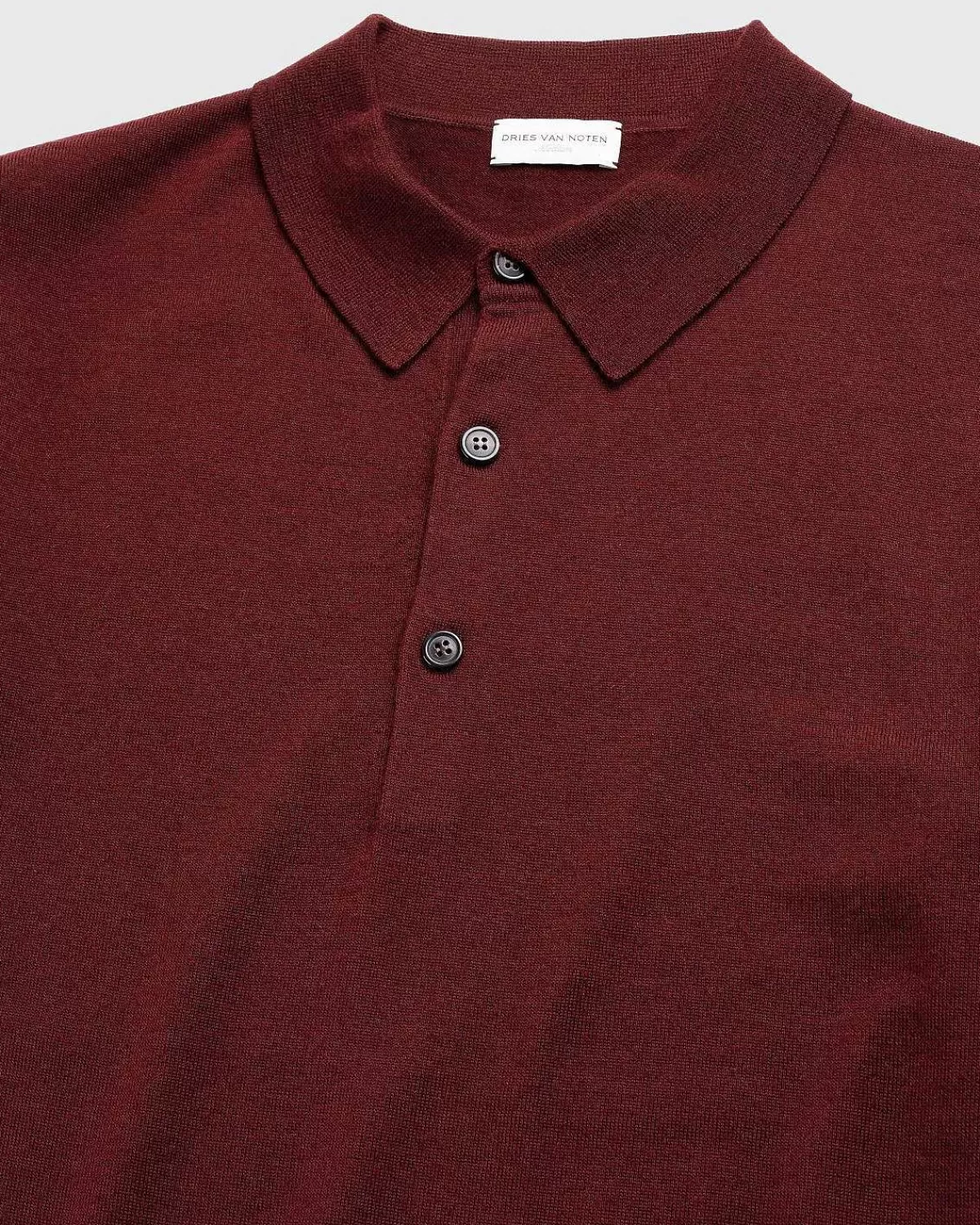 Et Nik Til Tidligere Årtier, The Murice Er Dries Van Notens Forhøjede Look På Den Strikkede Poloshirt Og Ankommer I En Levende Rød Farvevariant. Toppen Er Lavet Af Merinould Og Har En Ribstrikket Kant Og Manchetter Med En Klassisk Lukning Med Tre Knapper.