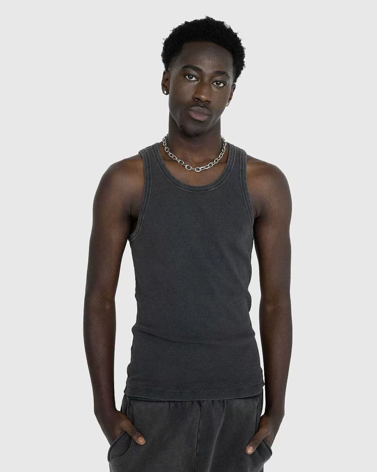 Lavet Til Alle, Rib Tank Er En Forhøjet Hele Studios Basic. Den Klassiske Top Kommer I En Række Neutrale Farver For Ubesværet Matchning, Skåret I En Slim Pasform For Et Mere Strømlinet Look. Produceret I Et Mellemvægts Bomuldsstof, Er Beklædningen Ribbet Og Behandlet Med En Enzymvask For Et Lidt Mere Karakteristisk Overordnet Look.