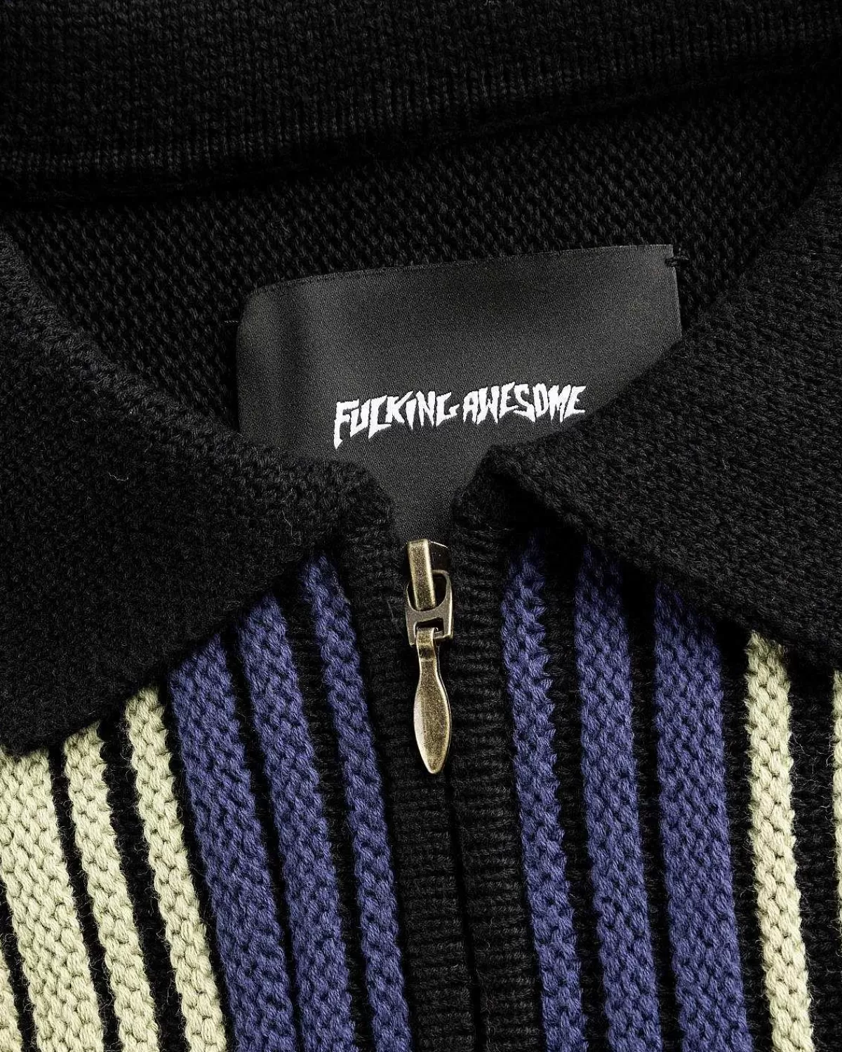 T-Shirts>Fucking Awesome Multi Stripe Zip Polo Sort/Stribet