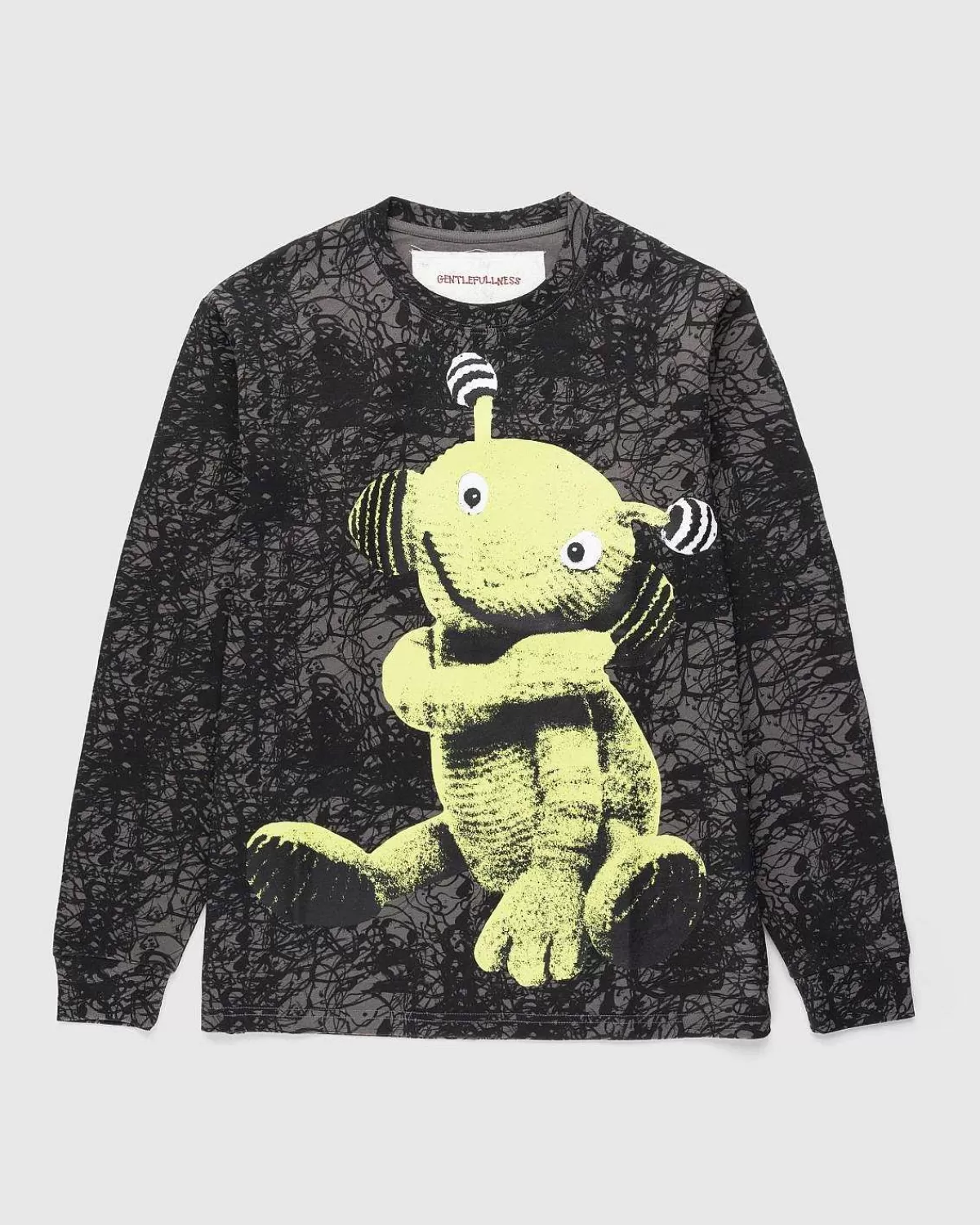 T-Shirts>Gentle Fullness Genbrugt Bomuld Alien Puppet Langaermet Tee Washed Black