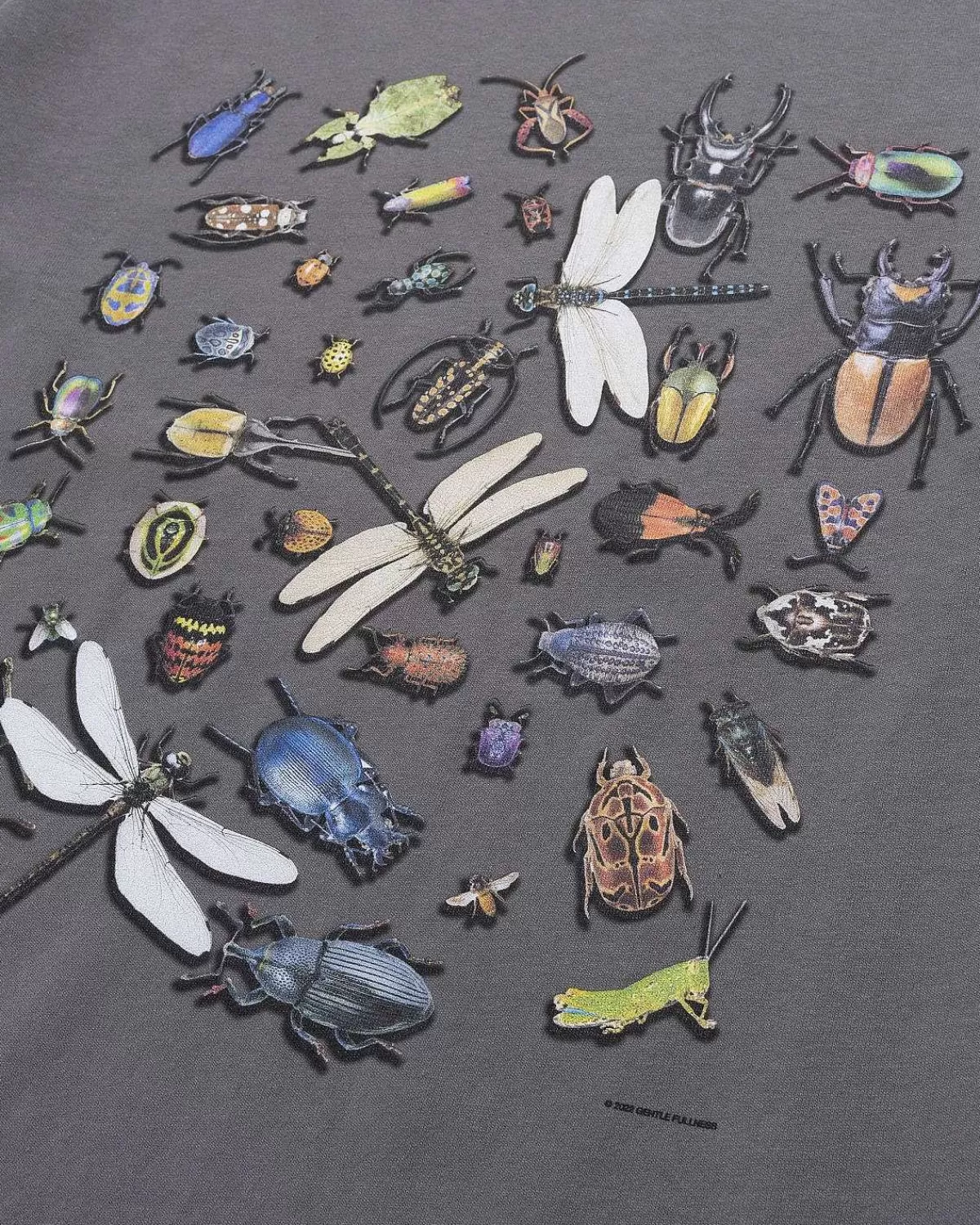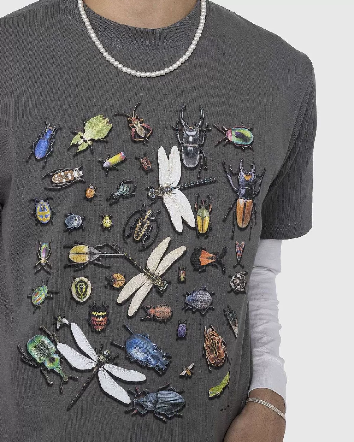 Bugs-T-Shirten Er Lavet Eksklusivt Til Story Mfg.’S Seasonal Gentle Fullness Collection. Den Kortærmede Top Er Lavet Af 60 % Genbrugsbomuld Og 40 % Økologisk Bomuld, Og Er Øko-Farvet, Dekoreret Med Et Udvalg Af Insekter På Forsiden Af Silhuetten. Skjorten Er Detaljeret Med En Traditionel Ribstrik Rund Hals Og Har En Afslappet, Boxy Pasform.