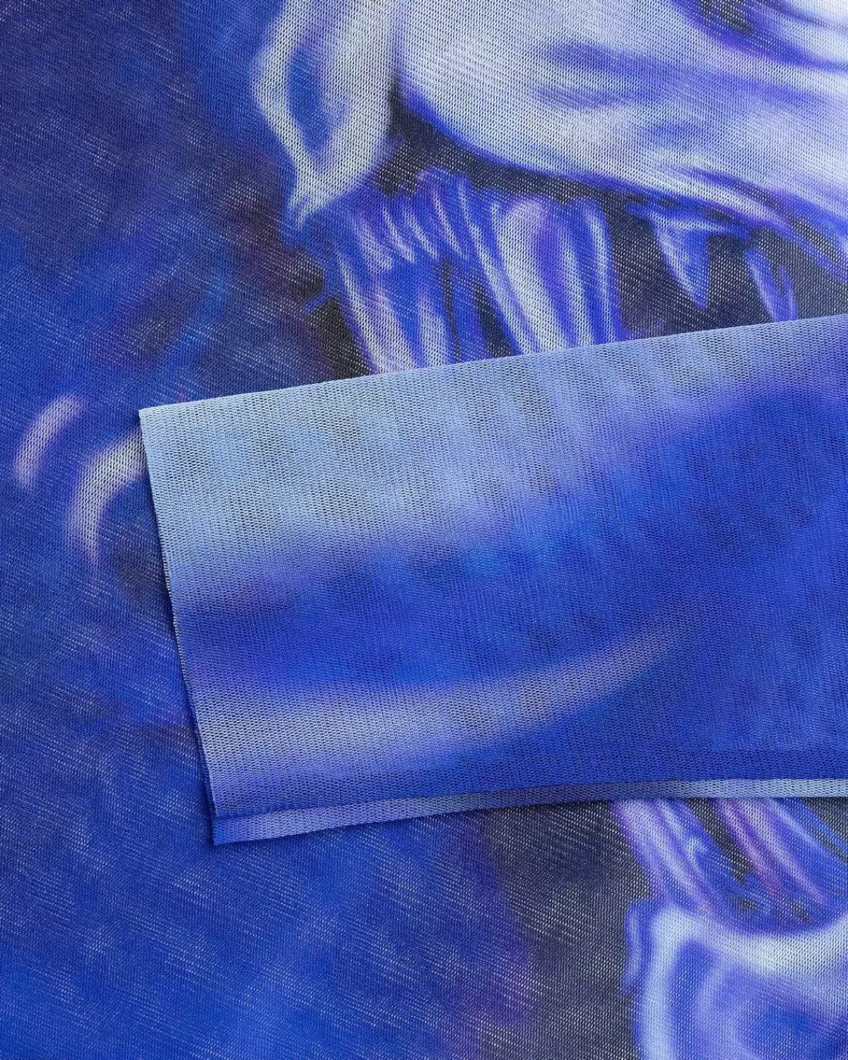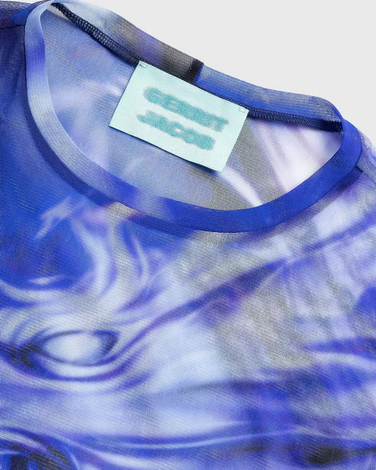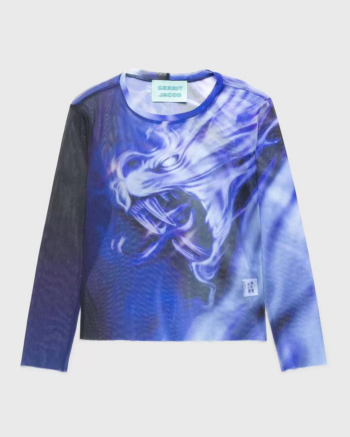 Mesh-Langærmet Er Et Af Mange Iøjnefaldende Stykker Fra Gerrit Jacobs Seneste Kollektion. Denne Strækbare Top Kommer I Et Semi-Gennemsigtigt Look, Der Er Detaljeret Med All-Over Printet Airbrush-Grafik Og Rå Kanter Ved Manchetterne Og Forneden.