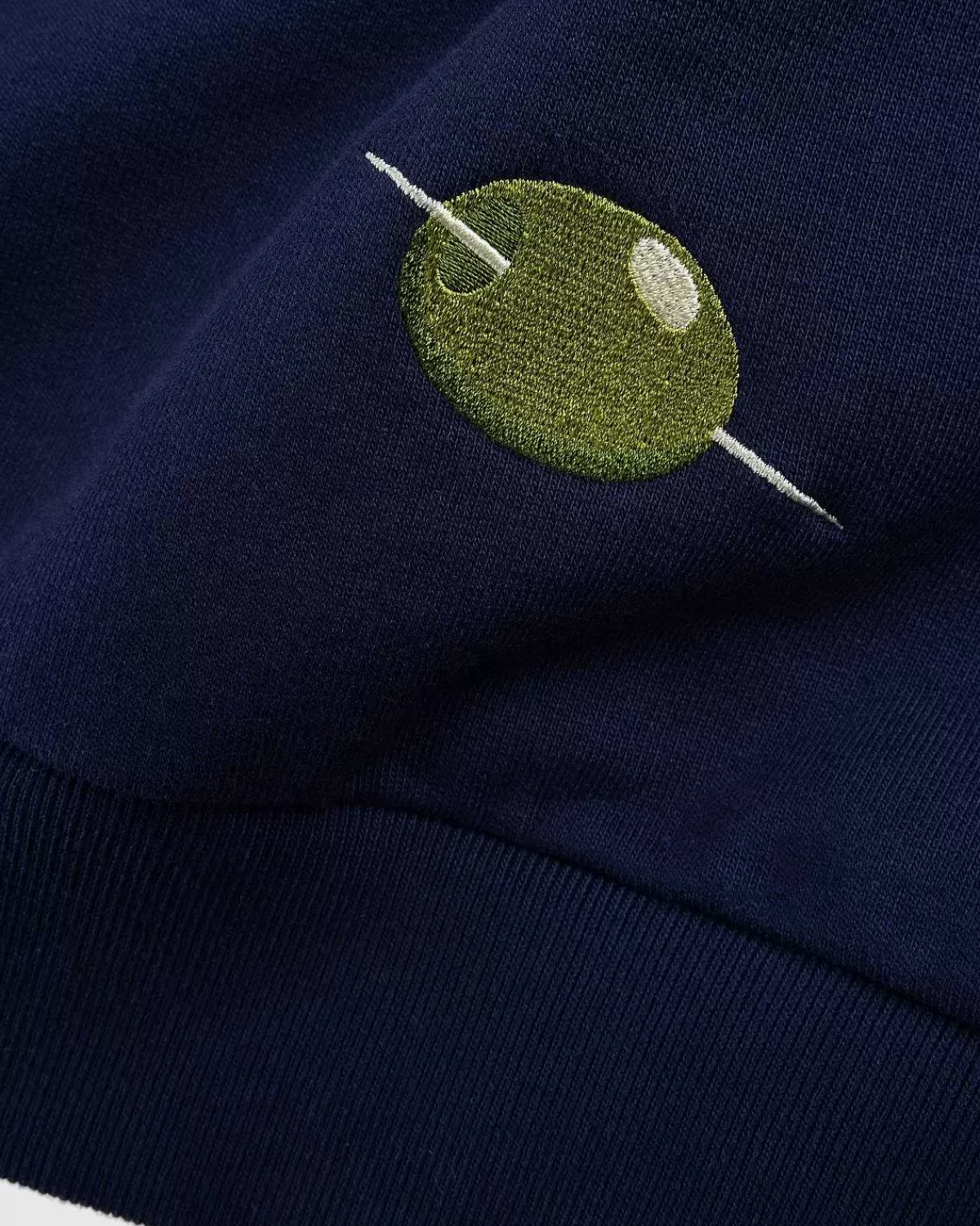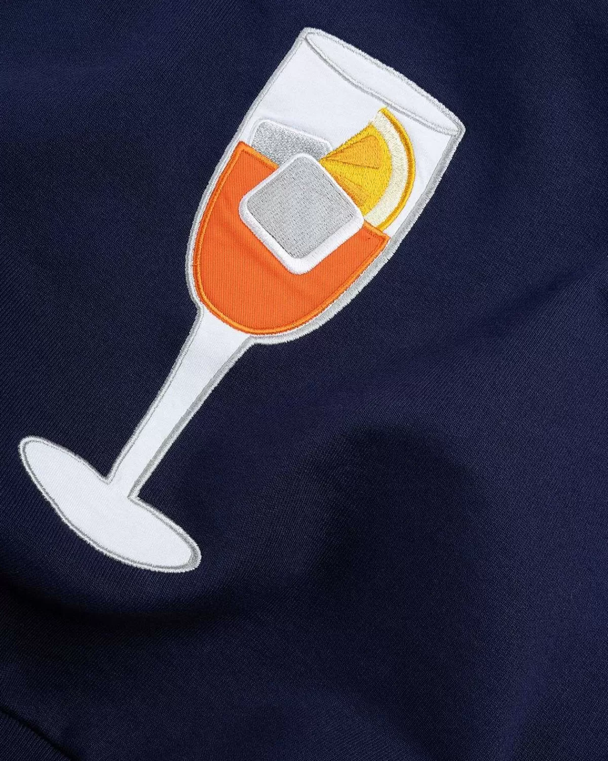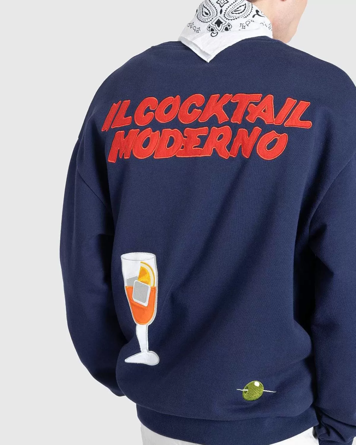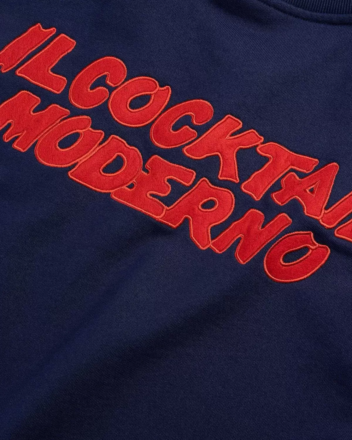 Fleece Crewneck Er Lavet Af Kraftig Fleece Og Har Broderede Logoer På Brystet Og Applikationsgrafik På Bagsiden, Der Viser Barens Slogan: “Il Cocktail Moderno.”