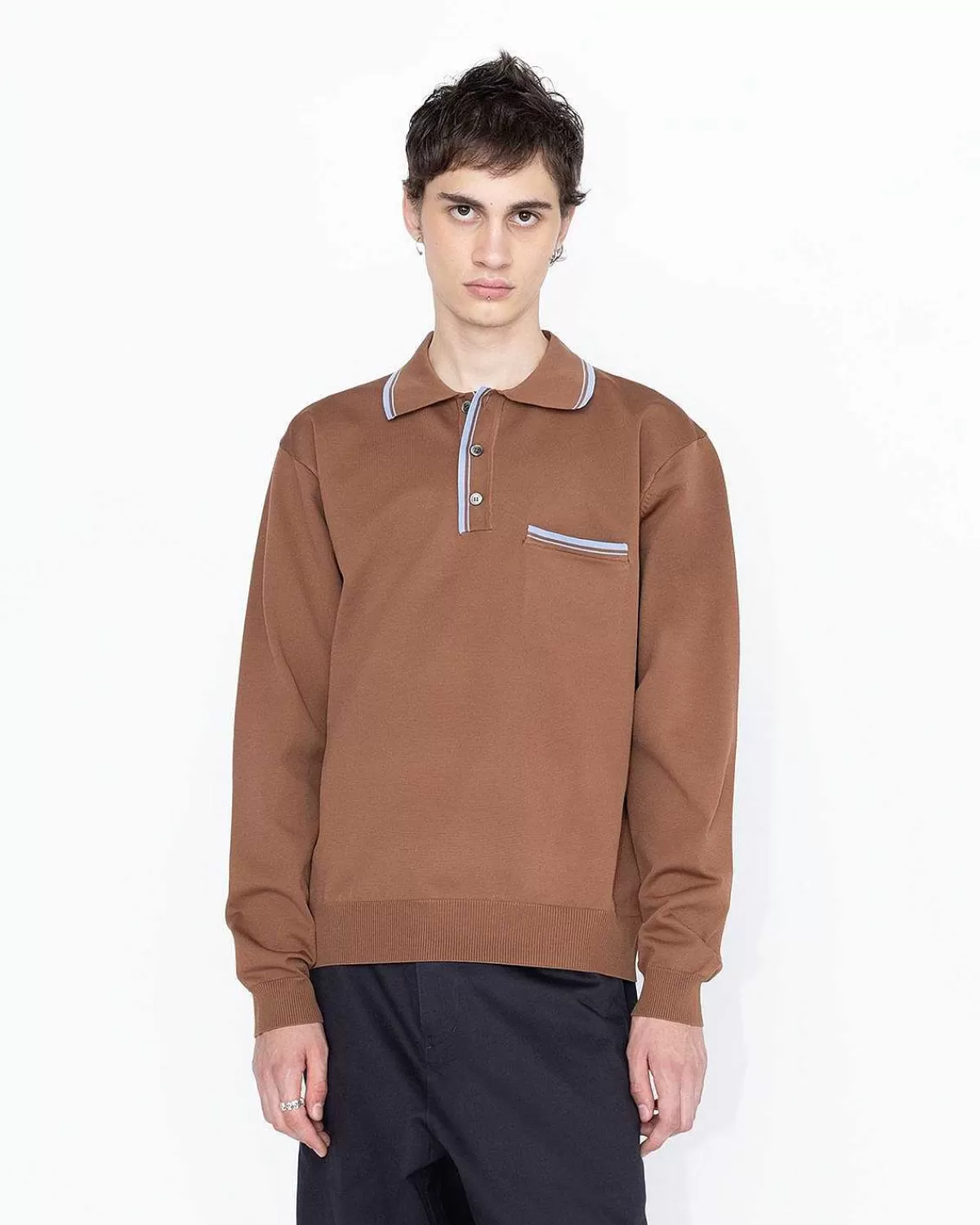 T-Shirts>Highsnobiety HS05 Langaermet Strik Polo Brun