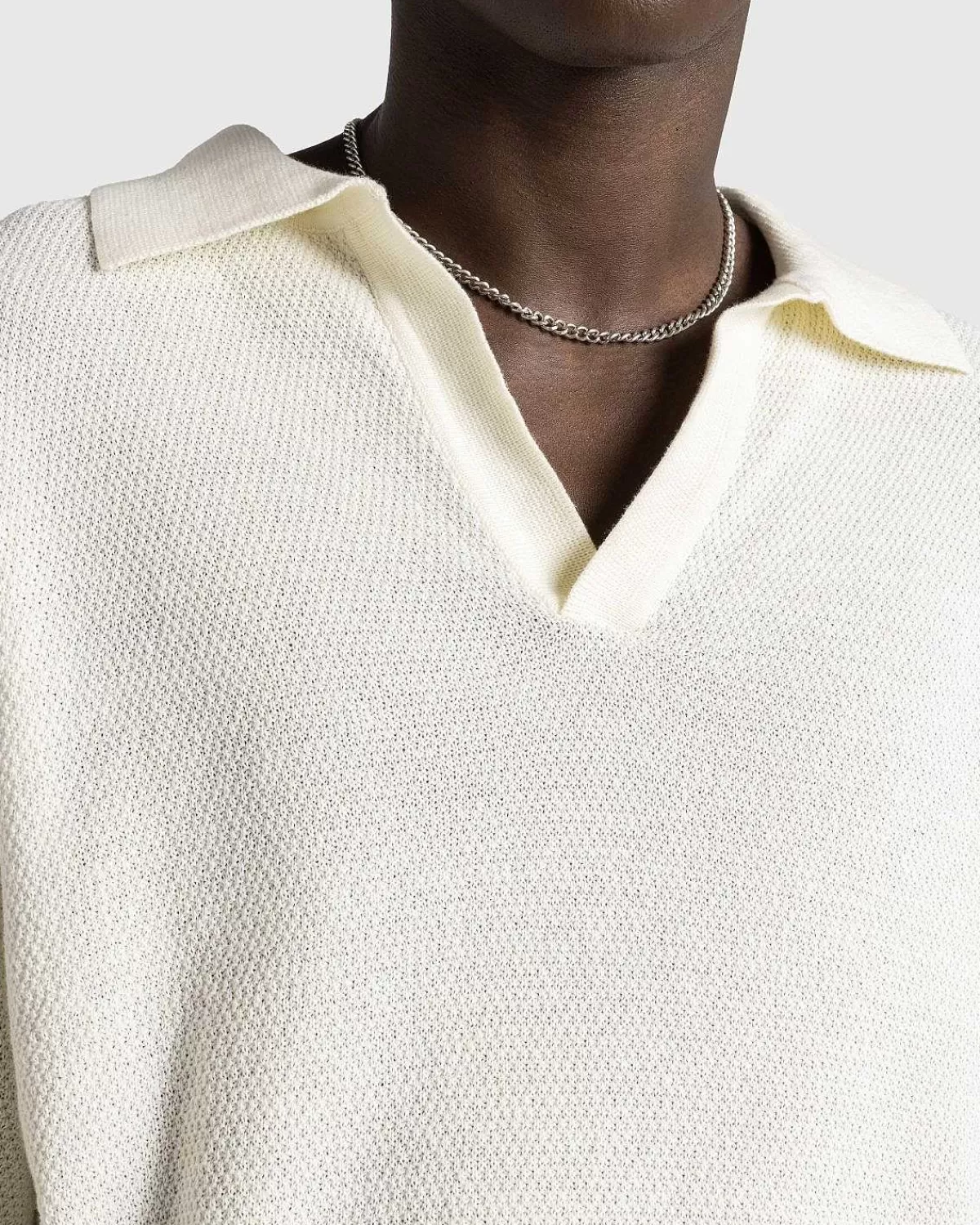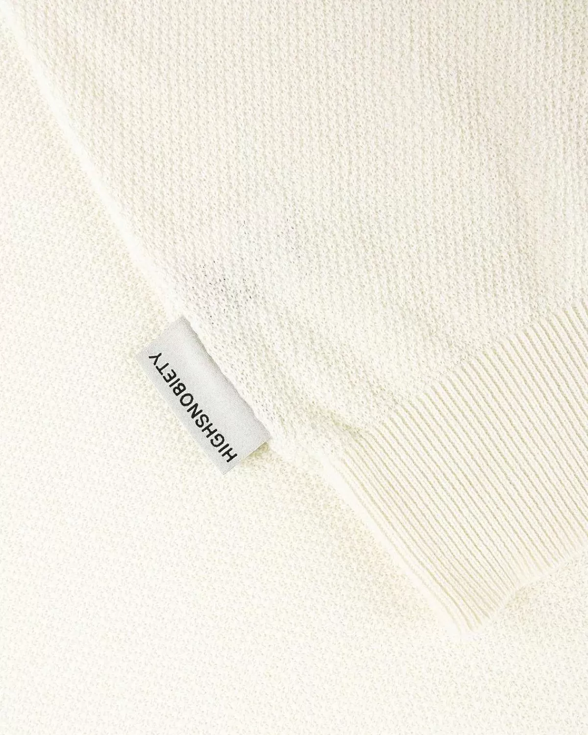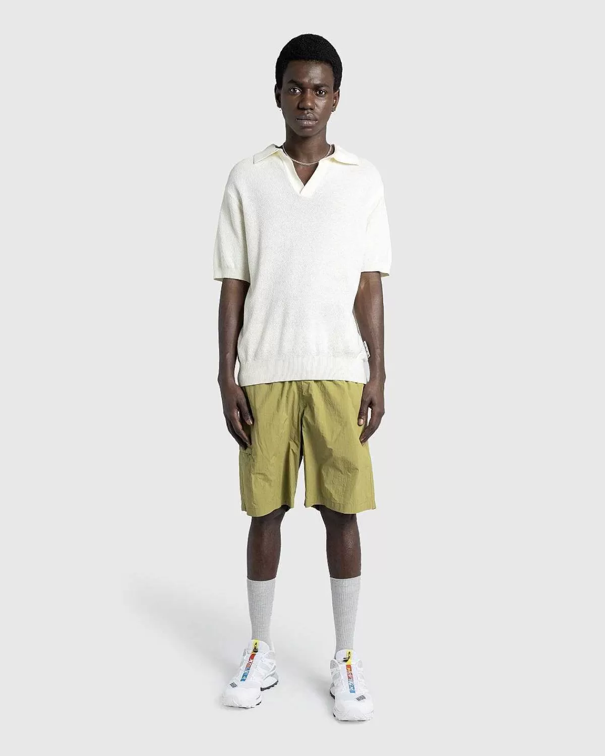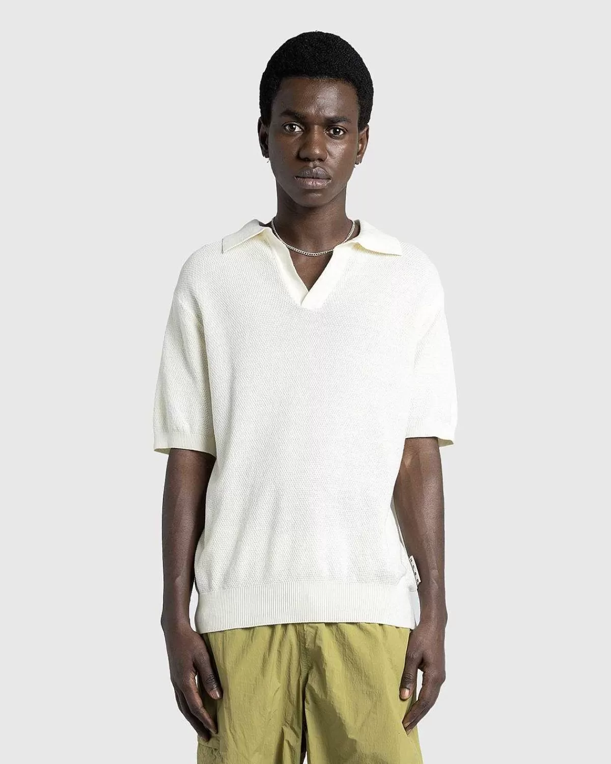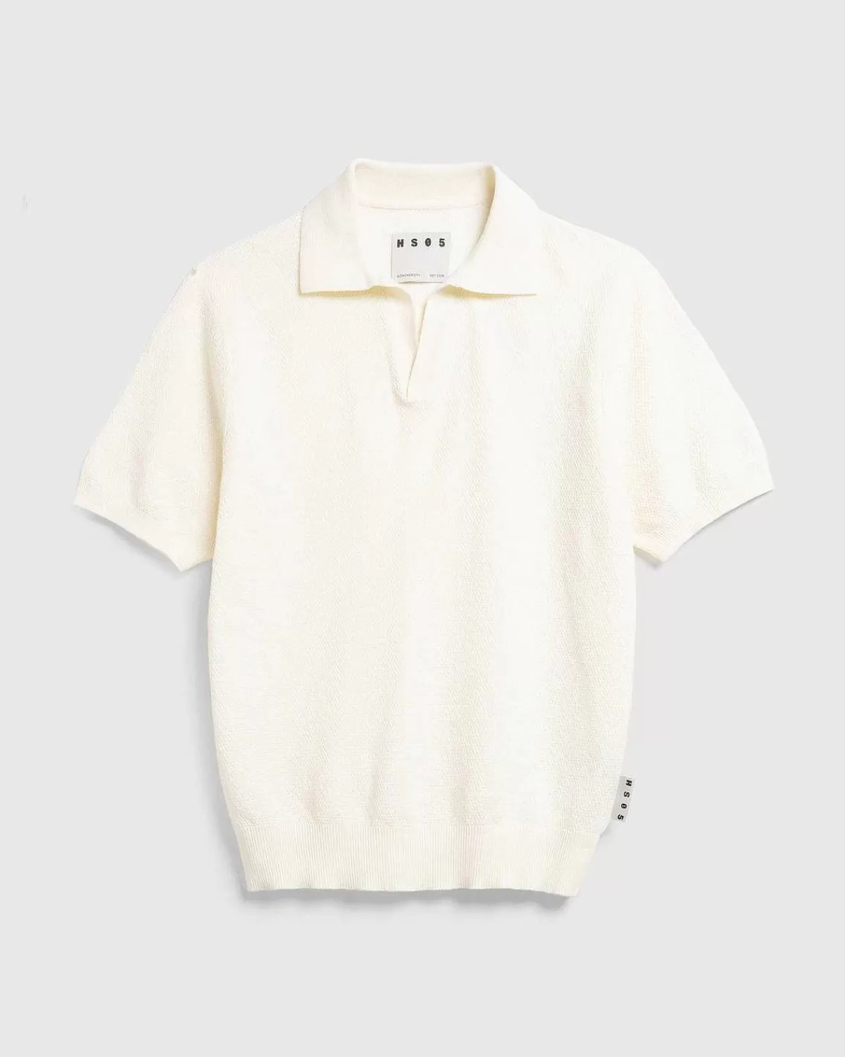 Den Lette Strikpolo Er Lavet Af Bomuld Med En Hævet, Pikset Tekstur, Der Fremmer Kontinuerlig Luftstrøm. Skåret I En Overdimensioneret Pasform Med Ribkanter Og En Spredt Krave, Den Kortærmede Skjorte Er Afsluttet Med En Vævet Hs05 Flagetiket Ved Sømmen.