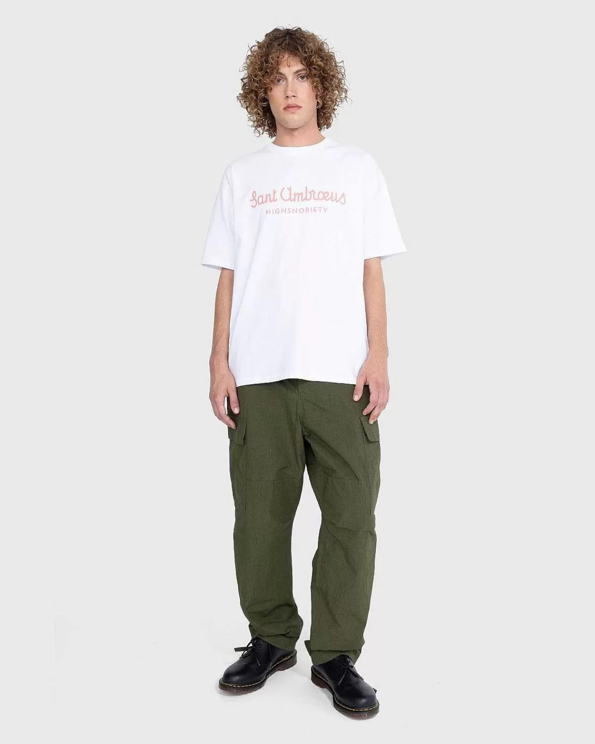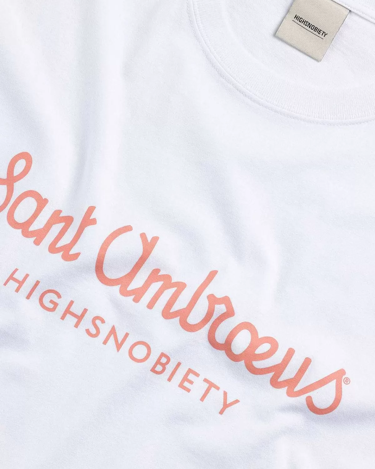 Denne Hvide T-Shirt Ankommer Som En Del Af Vores Hyldest Til Sant Ambroeus, Det Berømte Milanesiske Spisested, Der Er Blevet En Fast Bestanddel Af Nyc’S Spisescene Siden 1982. Produceret I 230 Gsm Stof, Den Kortærmede Skjorte Er Detaljeret Med Co-Branded Grafik På Tværs Af Brystet Og Har Spisestedets Ikoniske Fugleemblem Under Bagkraven.