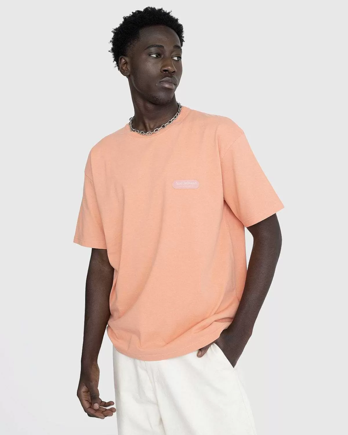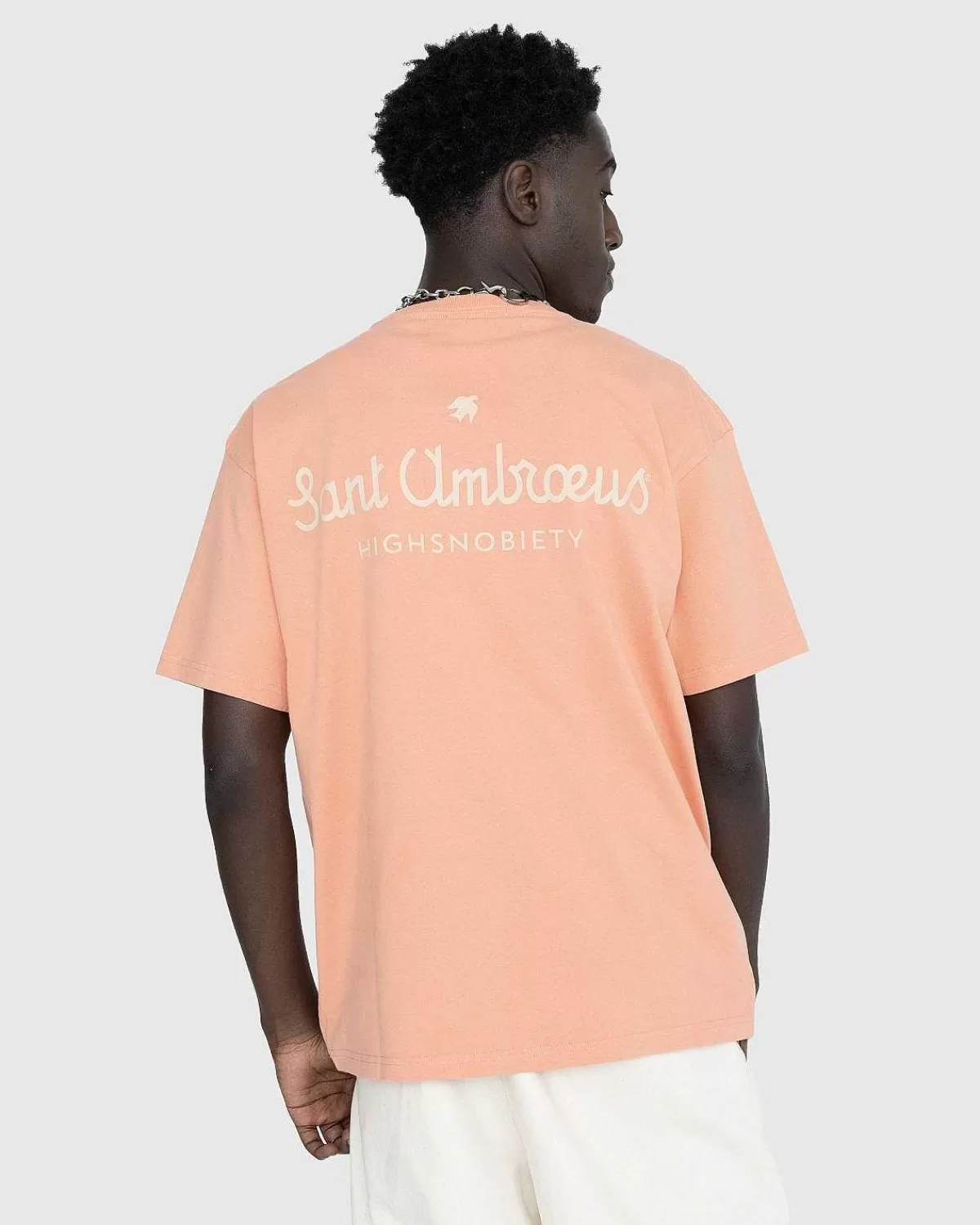 Denne Lyserøde T-Shirt Kommer Som En Del Af Vores Hyldest Til Sant Ambroeus, Det Berømte Milanesiske Spisested, Der Er Blevet En Fast Bestanddel Af Nyc’S Spisescene Siden 1982. Den Kortærmede Skjorte Er Fremstillet I 230 Gsm Stof Og Er Detaljeret Med Et Vævet Mærke Patch På Brystet Og Co-Branded Grafik På Bagsiden.