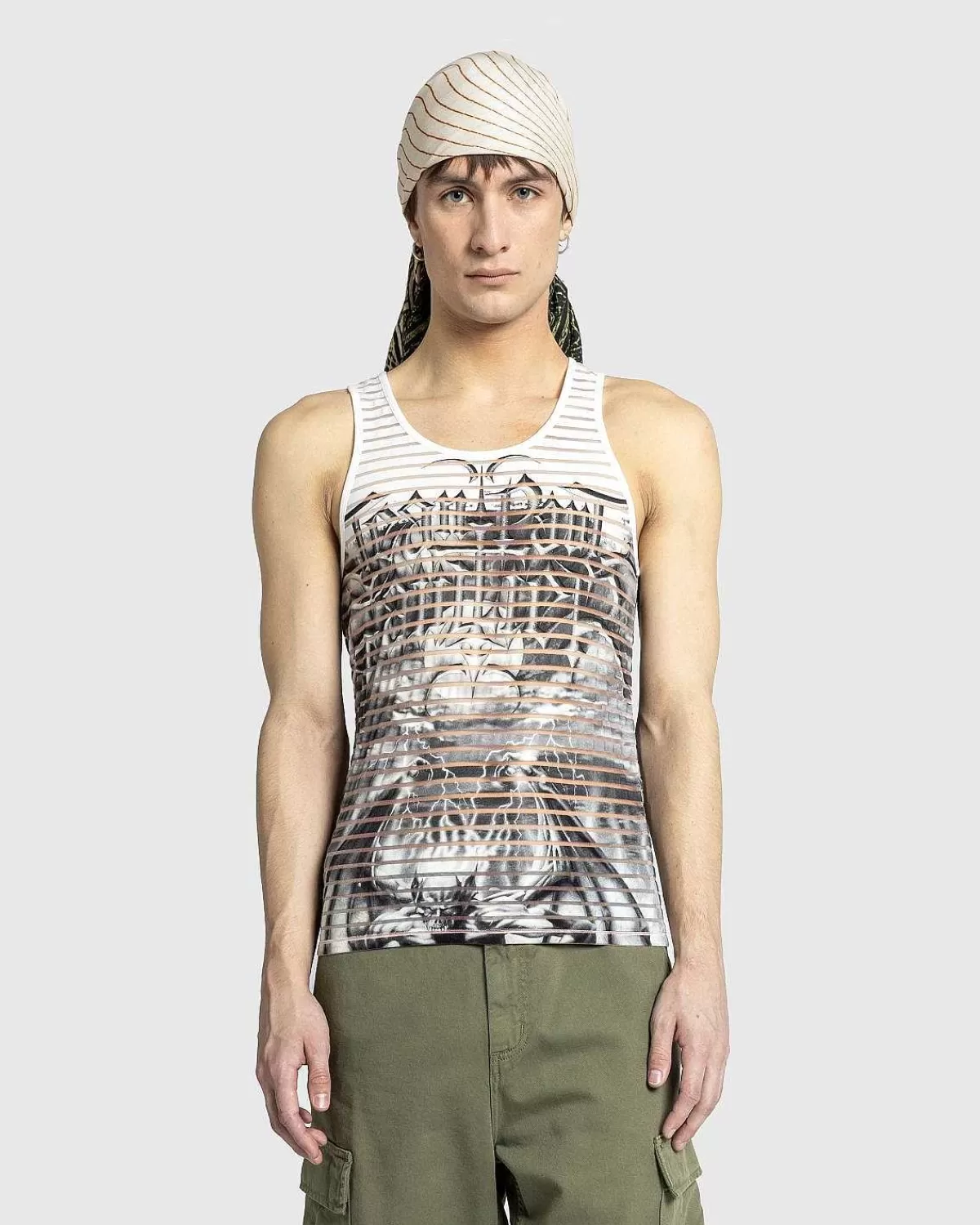 Denne Lette Og Strækbare Tanktop Er Defineret Af Jean Paul Gaultiers Polariserende Diablo-Motiv. Den Ærmeløse Stil Er…