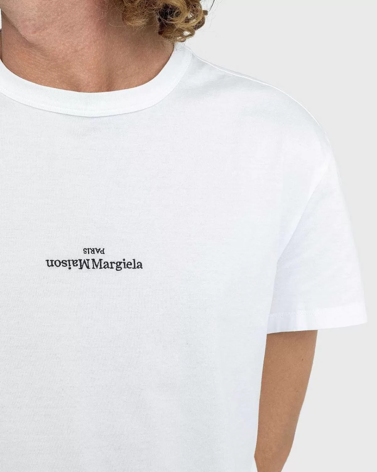 Maison Margiela Vender Manuskriptet Med Denne Sæsonbestemte Logo-T-Shirt, Da Den Kan Prale Af Et Margiela Paris-Logo, Der Vender På Hovedet, Broderet Foran. Omkring Bagsiden Finder Du Mærkets Signatur Fire Sømme Moniker I Tonal Tråd.