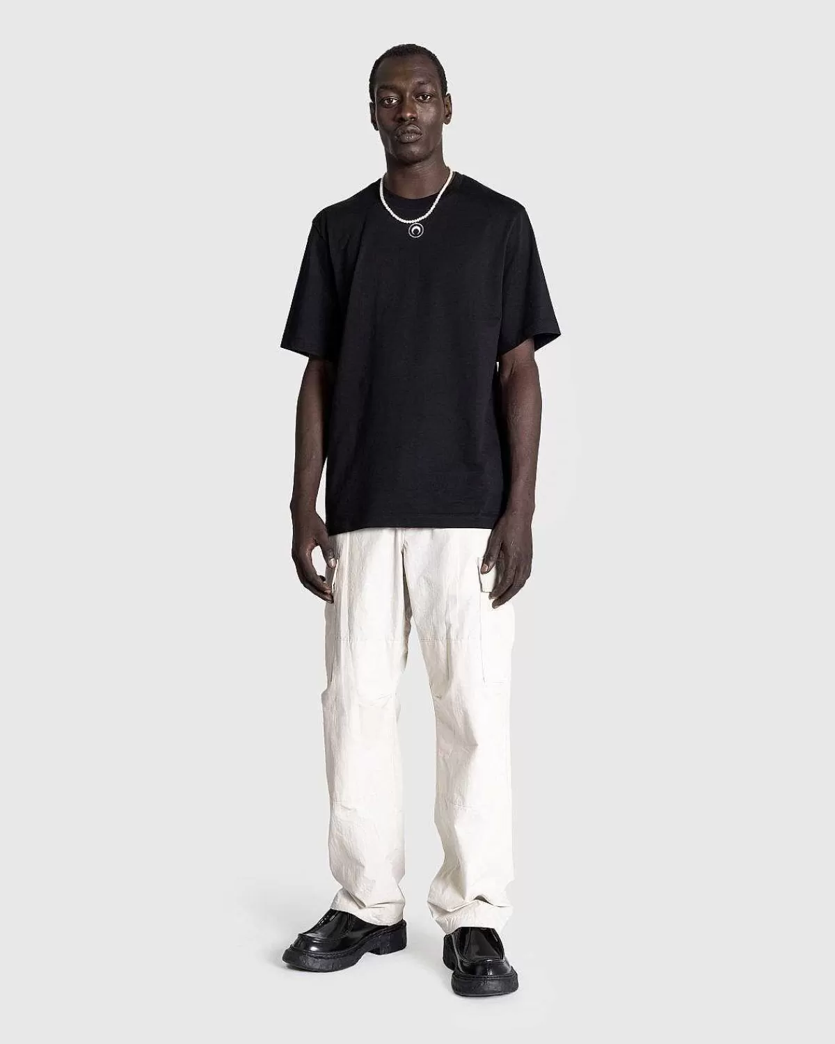 T-Shirten I Økologisk Bomuld Er En Essentiel Marine Serre Basic, Skåret I En Afslappet, Kønsløs Pasform. Tilbydes I Neutrale Farver, Der Gør Det Nemt At Matche, Den Kortærmede Top Er Detaljeret Med En Rund Hals Med Rib Og Mærket Med Etikettens Månelogo, Som Er Broderet På Brystet, Ud Over Et Logomærke Påført Bagpå.