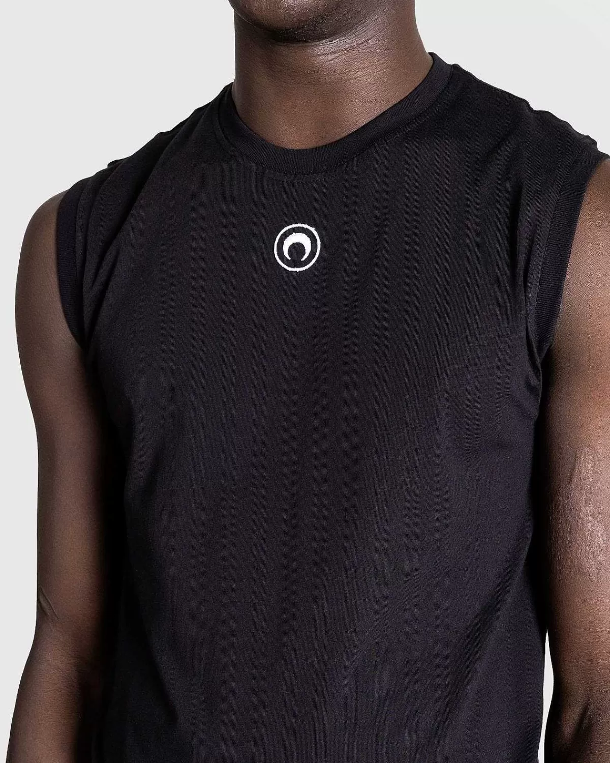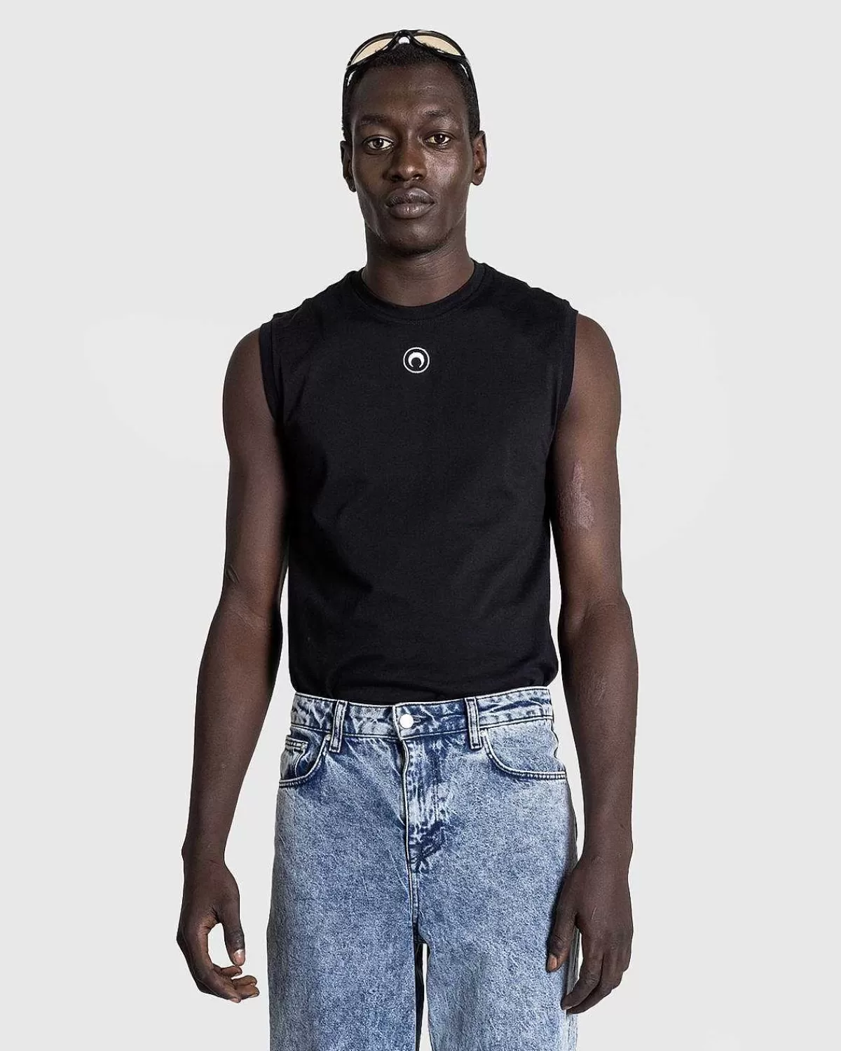 Marine Serres Tanktop I Økologisk Bomuld Henter Inspiration Fra Grundlæggende Undertøjsstile, Og Fungerer Som Et Let Underlag Eller En Afslappet Sommertop. Designer Essential Er Skåret Til En Boxy Pasform Fra Blød Trøje Og Er Udsmykket Med Et Broderet Månelogo Foran Og I Midten, Ud Over Komplementær Ikonografi På Bagsiden Af Halsen.