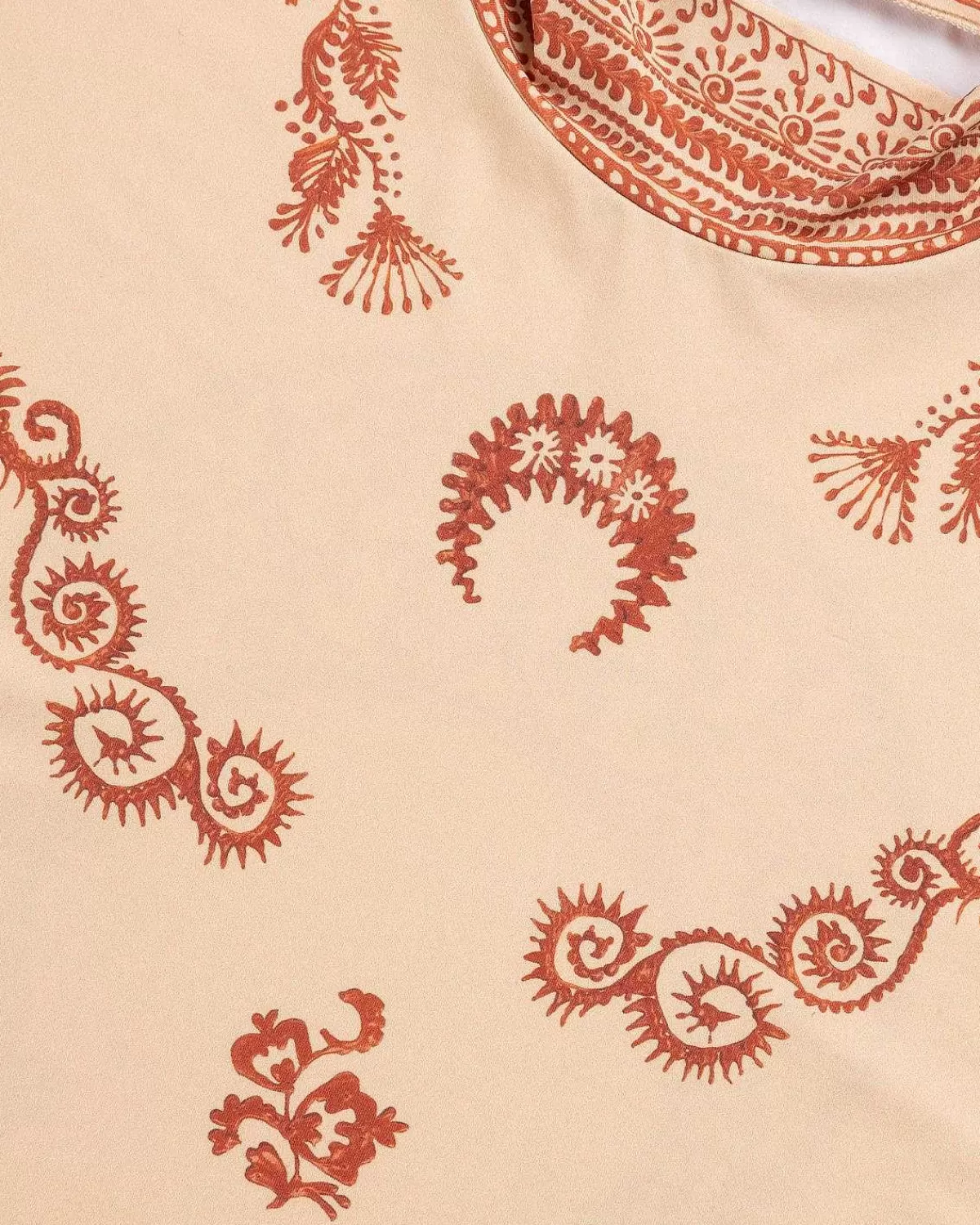 T-Shirts>Marine Serre Regenereret Henna Print Second Skin Top Beige