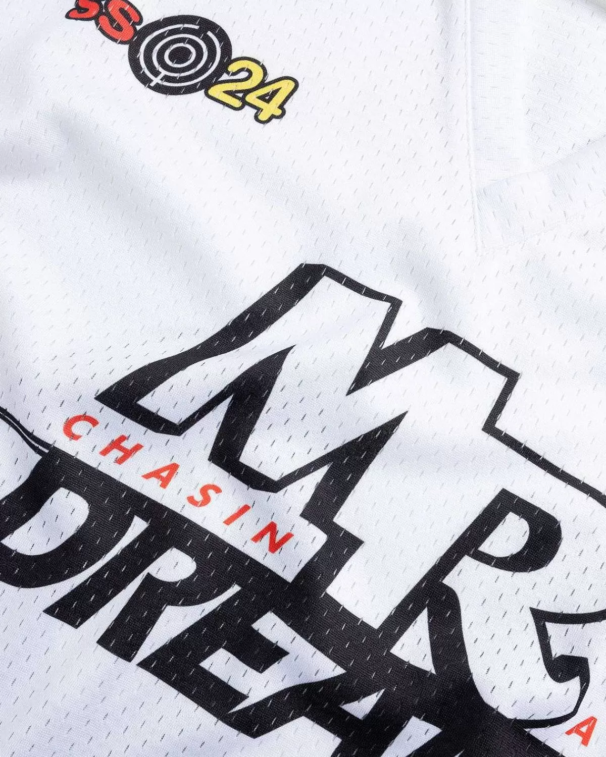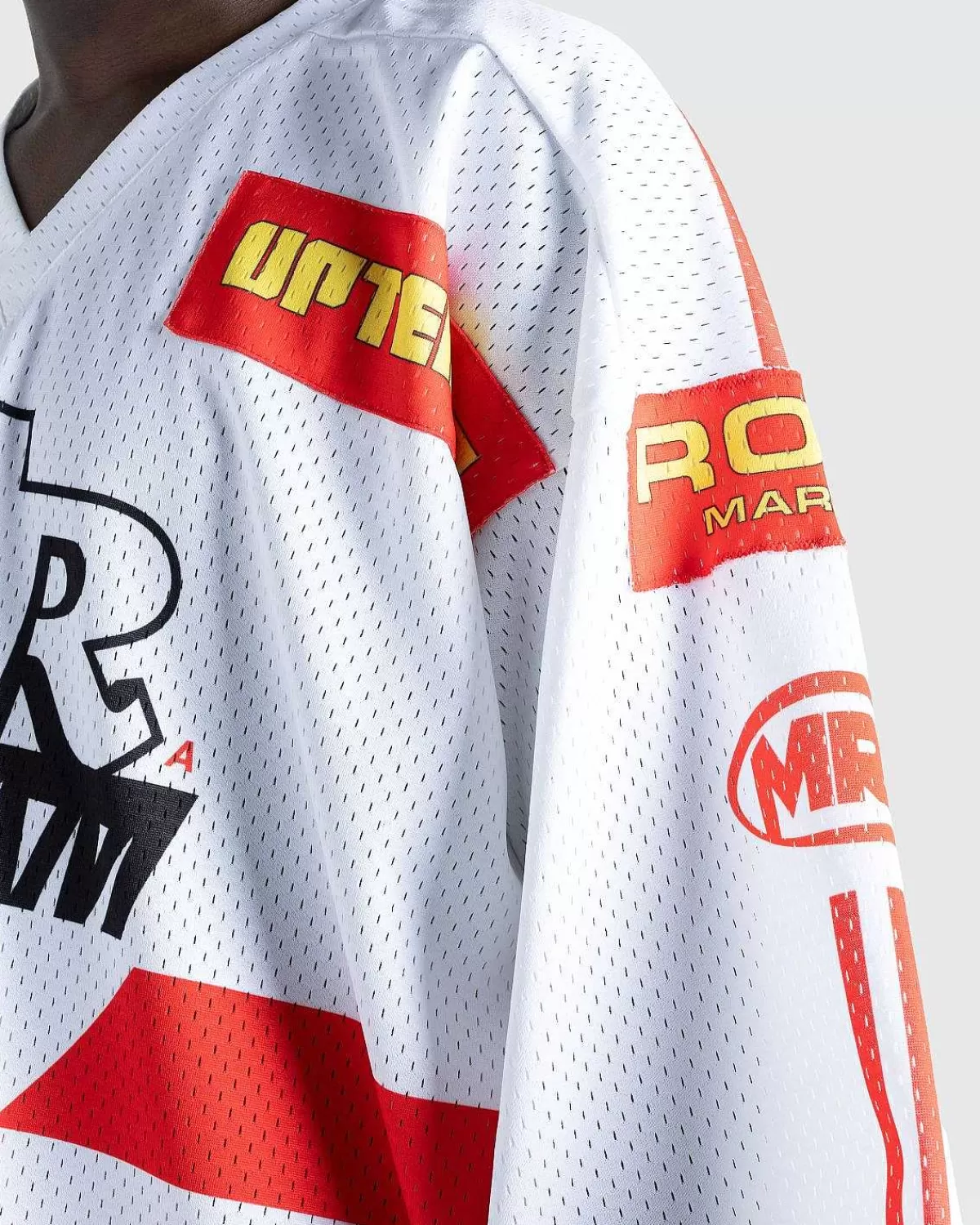 For Sin Seneste Kollektion Ophøjer Martine Rose Dette Klassiske Fodboldsæt Med Sæsonbestemte Logoer. Detaljeret Med En Klassisk V-Halskrave, Mesh-Trøjen Er Skåret I En Overdimensioneret Pasform Med Faldede Skuldre Og Har Designerens Navn Trykt På Ryggen.