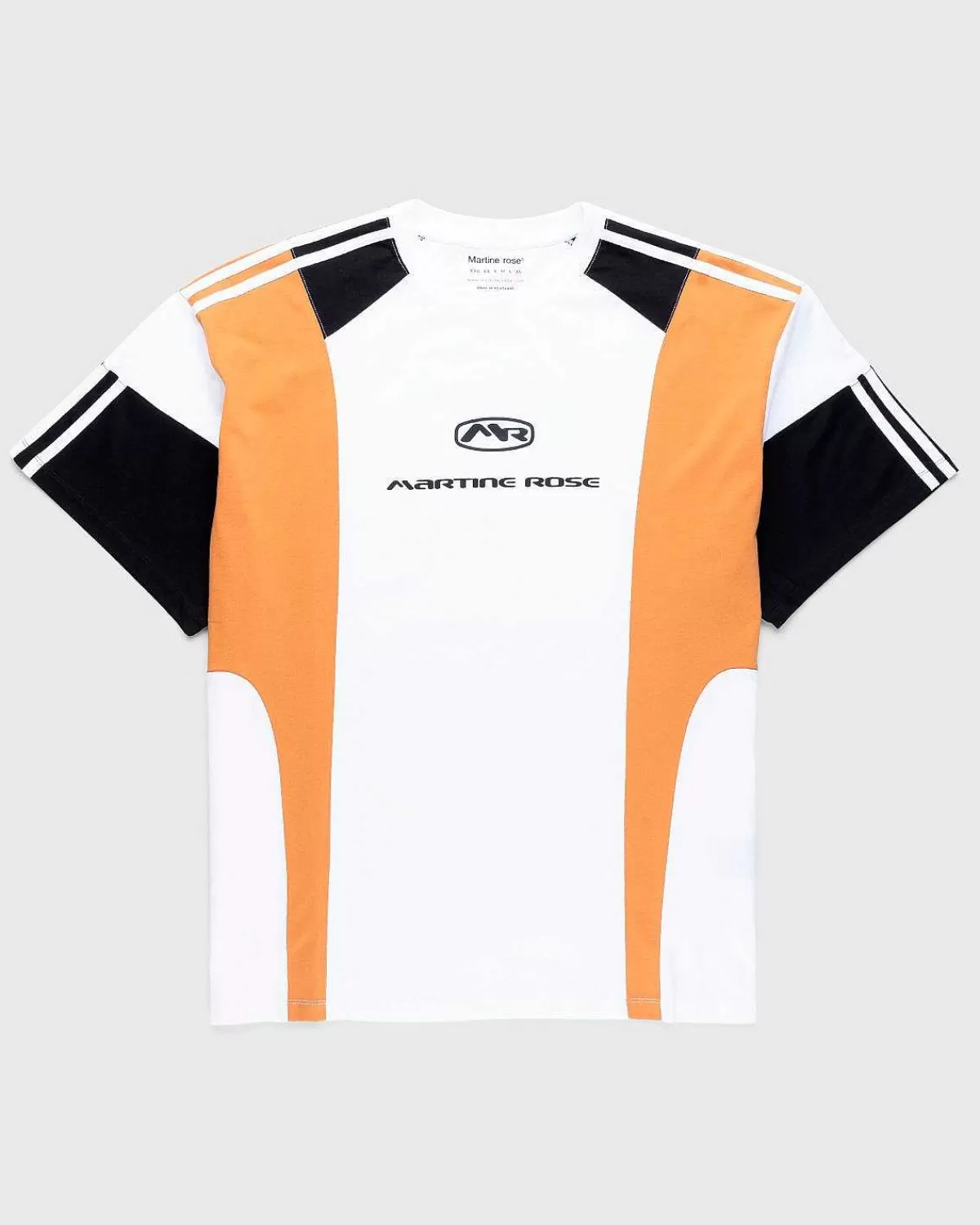 Denne Martine Rose T-Shirt Er Et Sæsonbestemt Design Med Kontrasterende Sorte Og Terrakottapaneler Samt Stribede Detaljer På Ærmerne. Skåret Til En Løs Eller Overdimensioneret Pasform, Den Kortærmede Stil Er Derefter Mærket Med Et Gel-Screenprintet Martine Rose-Logo, Indbygget På Forsiden Af Silhuetten.