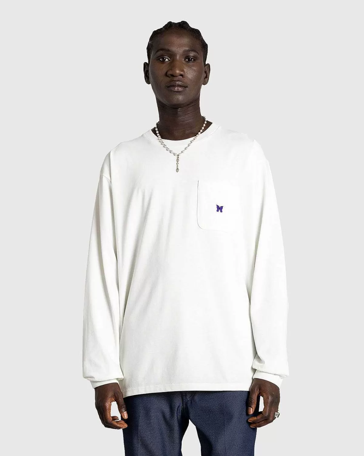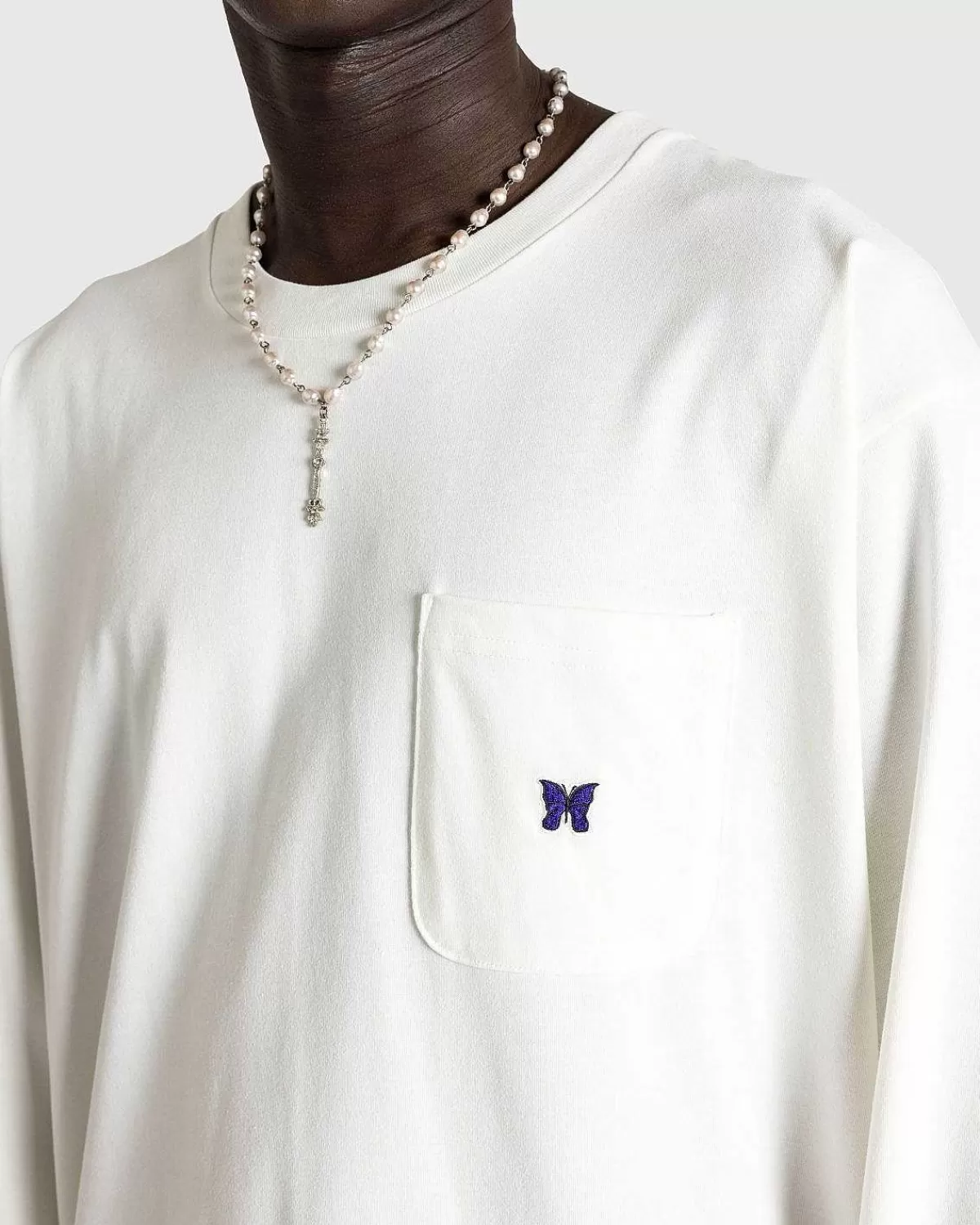 T-Shirts>Needles L/S T-Shirt Med Rund Hals Poly Jersey Hvid