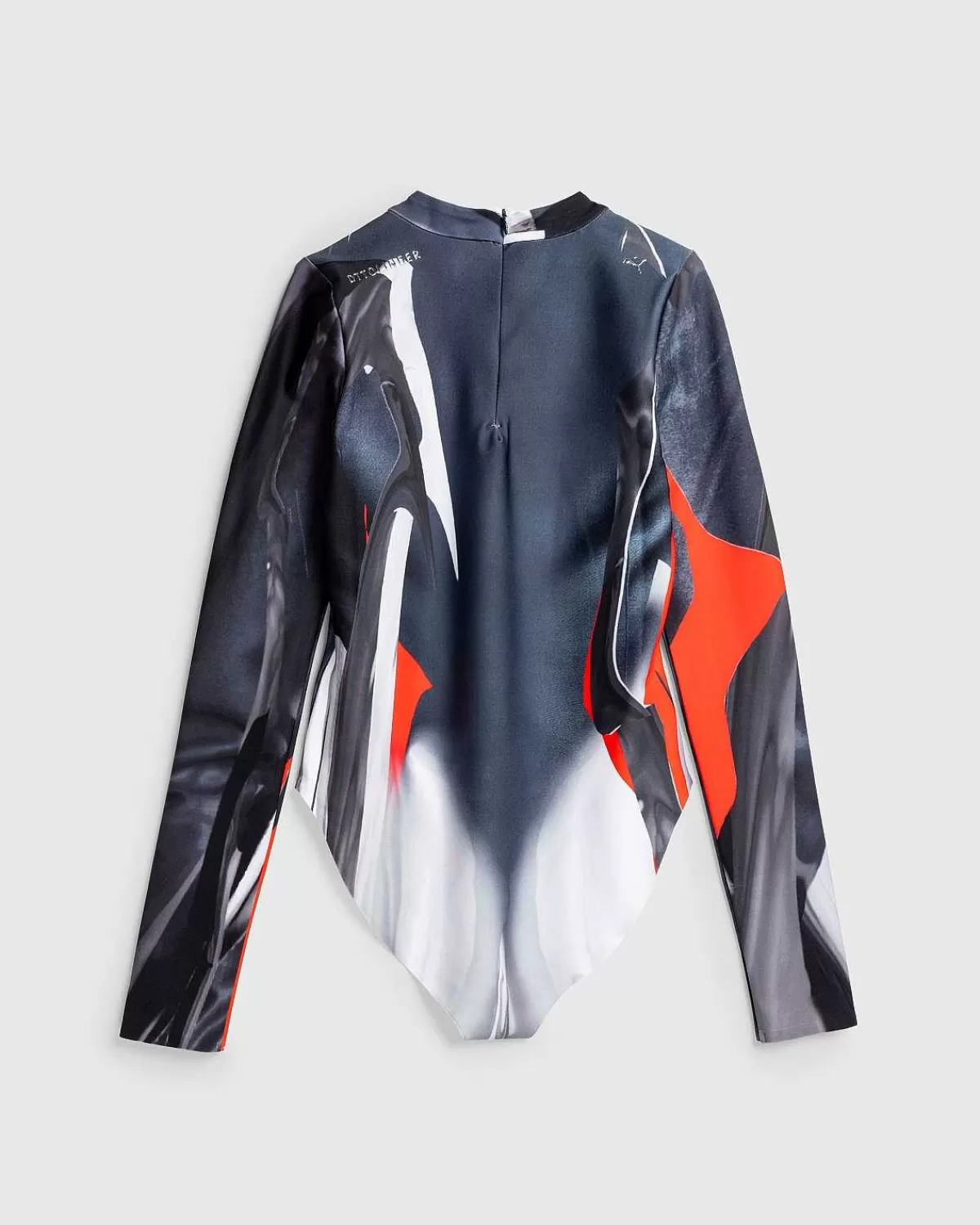 Puma Og Ottolinger Ser Mod Fremtiden I Deres Seneste Kollektion, Der Blander Motorsport Og Science Fiction. Den Kollaborative Langærmede Bodysuit Er Omhyggeligt Designet, Lavet I En Panelkonstruktion Med Trompe L’Oeil-Tryk, Der Tilføjer Et Strejf Af Sidestilling Til Enhver Indstilling. Tætsiddende Til Din Kropsform, Toppen Er Udsmykket Med Jakkesæt Og Slips-Grafik Overalt Og Har Et Metallisk Puma-Logo På Tværs Af Brystet.