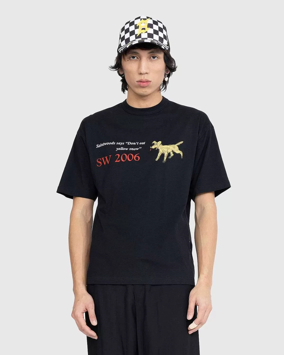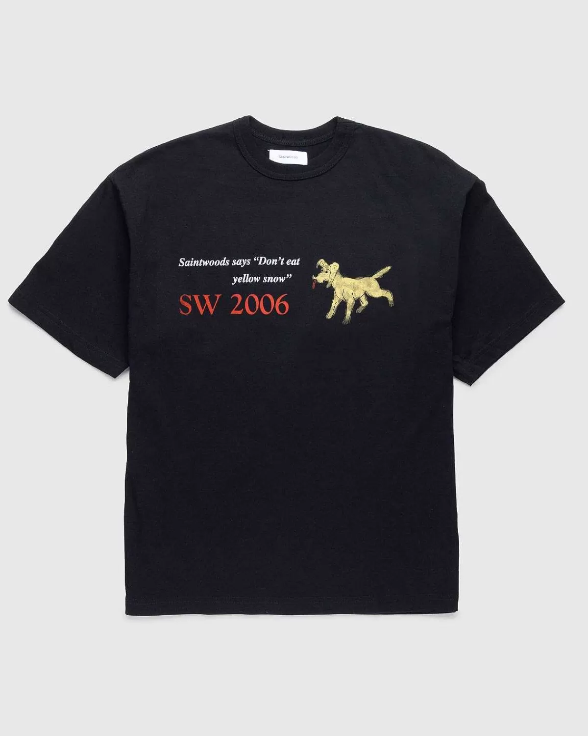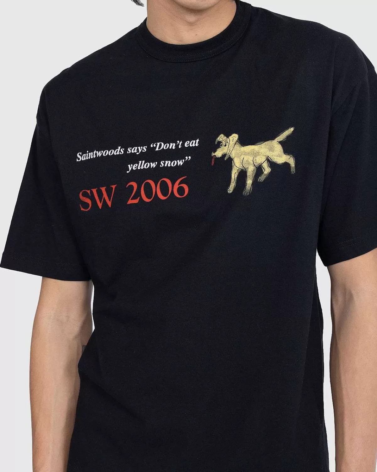 Den Gule Sne-T-Shirt Er En Fræk T-Shirt-Stil Fra Saintwoods. Den Kortærmede Top Er Produceret I Bomuldsjersey Og Er Detaljeret Med En Traditionel Ribstrikket Rund Hals, Mens Den Er Dekoreret Med Et Legende Grafisk Screenprint På Forsiden Af Silhuetten.