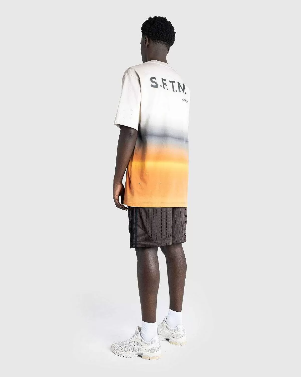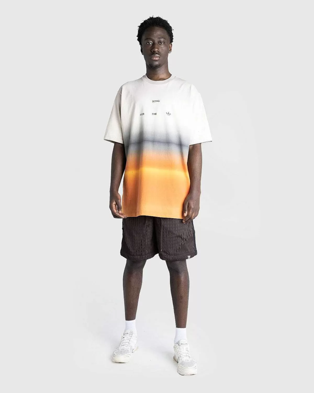 Denne Adidas-T-Shirt, Der Ankommer Som En Del Af Sangen Til The Mute 002-Samarbejdet, Viser Et Gradientdesign, Der Tiltrækker Øjeblikkelig Opmærksomhed På Tøjet. Den Er Lavet Af Mellemvægts Bomuldstrøje Og Skåret Til En Overdimensioneret Pasform. Distressed Huller Tilføjer En Smule Karakter Ved Søm Og Skulder, Mens Tilpasset Grafik På Forsiden Og Bagsiden Signalerer Den Fælles Indsats. Stykket Afsluttes Derefter Med En Lille Logofane Indbygget På Venstre Ærme.