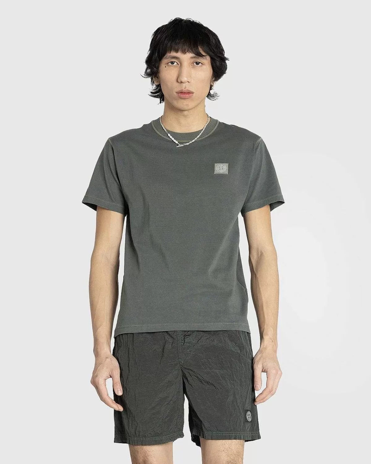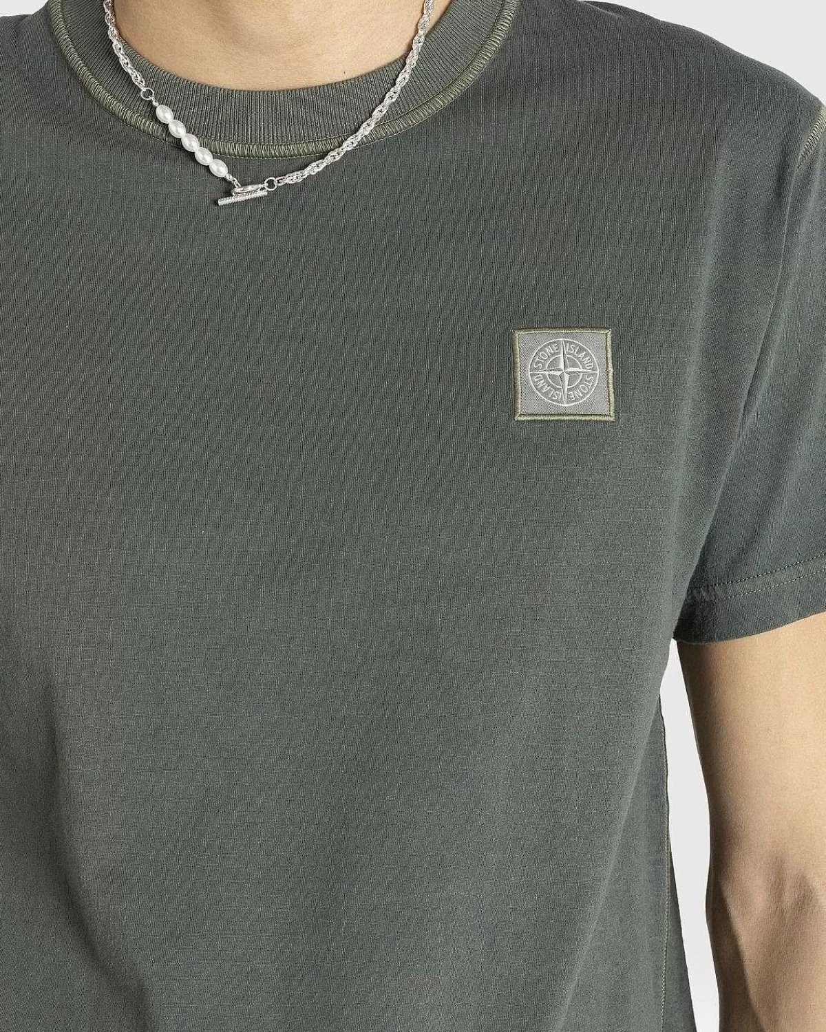 Denne Tonale T-Shirt Fra Stone Island Er Beklædningsfarvet Og Behandlet Med Mærkets “Fissato”-Effekt, En Vandopløseli…