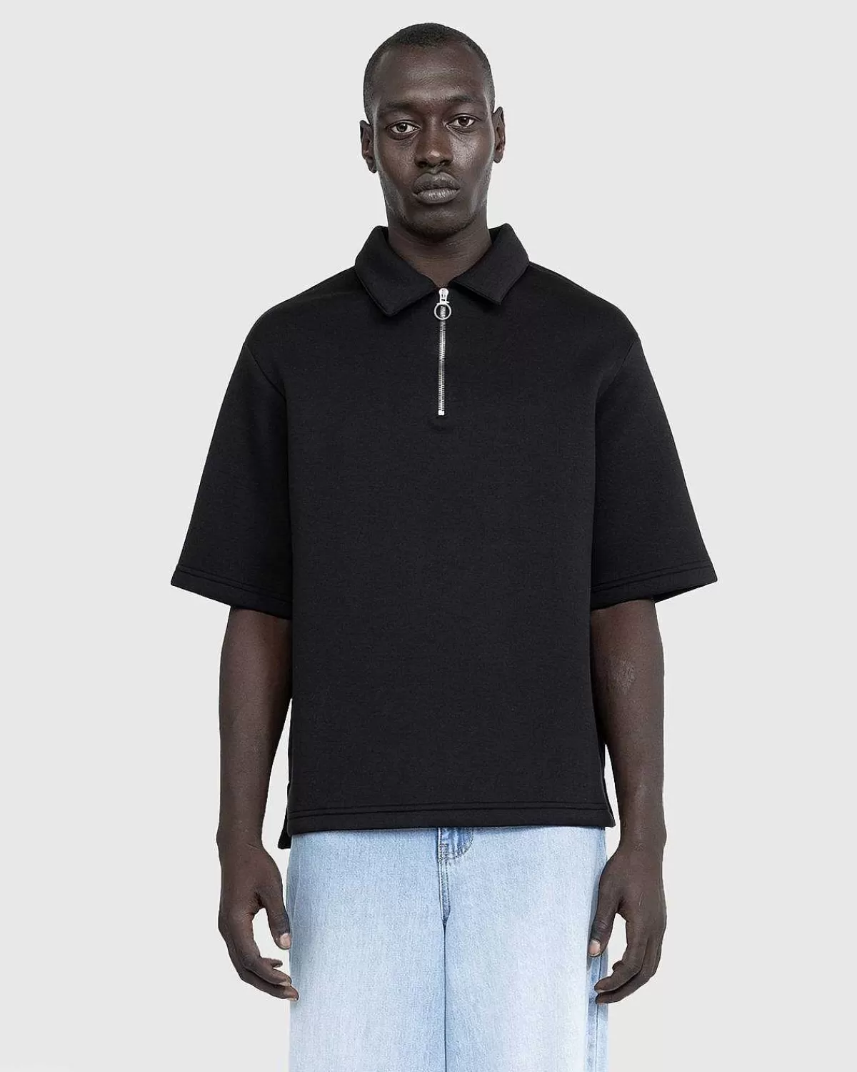Denne Minimal Polo Fra Trussardi Er Lavet Til Alle Lejligheder Og Ankommer I En Alsidig Helt Sort Farvevariant Med En Kvart Lynlås Lukning. Lavet Af Dobbeltstrikket Polyester, Der Almindeligvis Bruges I Våddragter, Den Kortærmede Top Er Tæt Vævet Og Har En Glat, Strækbar Tekstur.