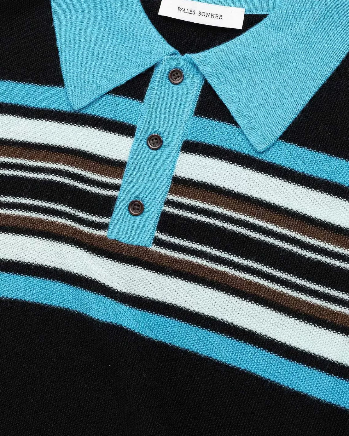 T-Shirts>Wales Bonner Tropiques Polo Sort/Gron/Gul
