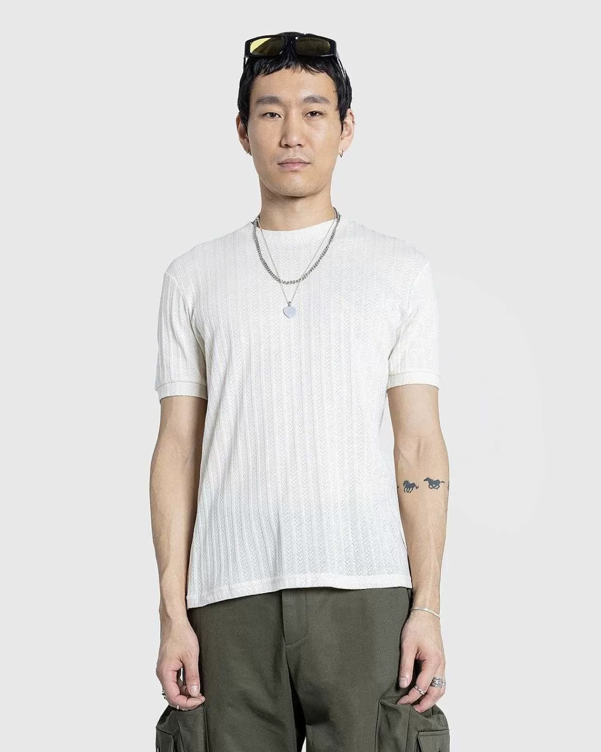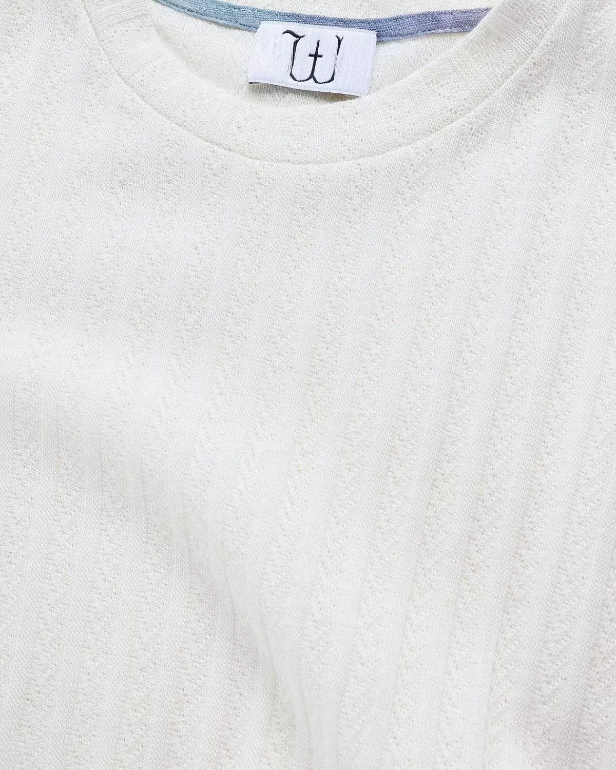 Dollyen Er En Forhøjet T-Shirt-Stil Lavet I Italien Af En Tekstureret Bomuldsblanding. Den Er Skåret Til En Normal Pasform Og Er Defineret Af Et Semi-Transparent Stribedesign, Mens Det Har En Rund Hals, Korte Ærmer Og En Lige Søm.