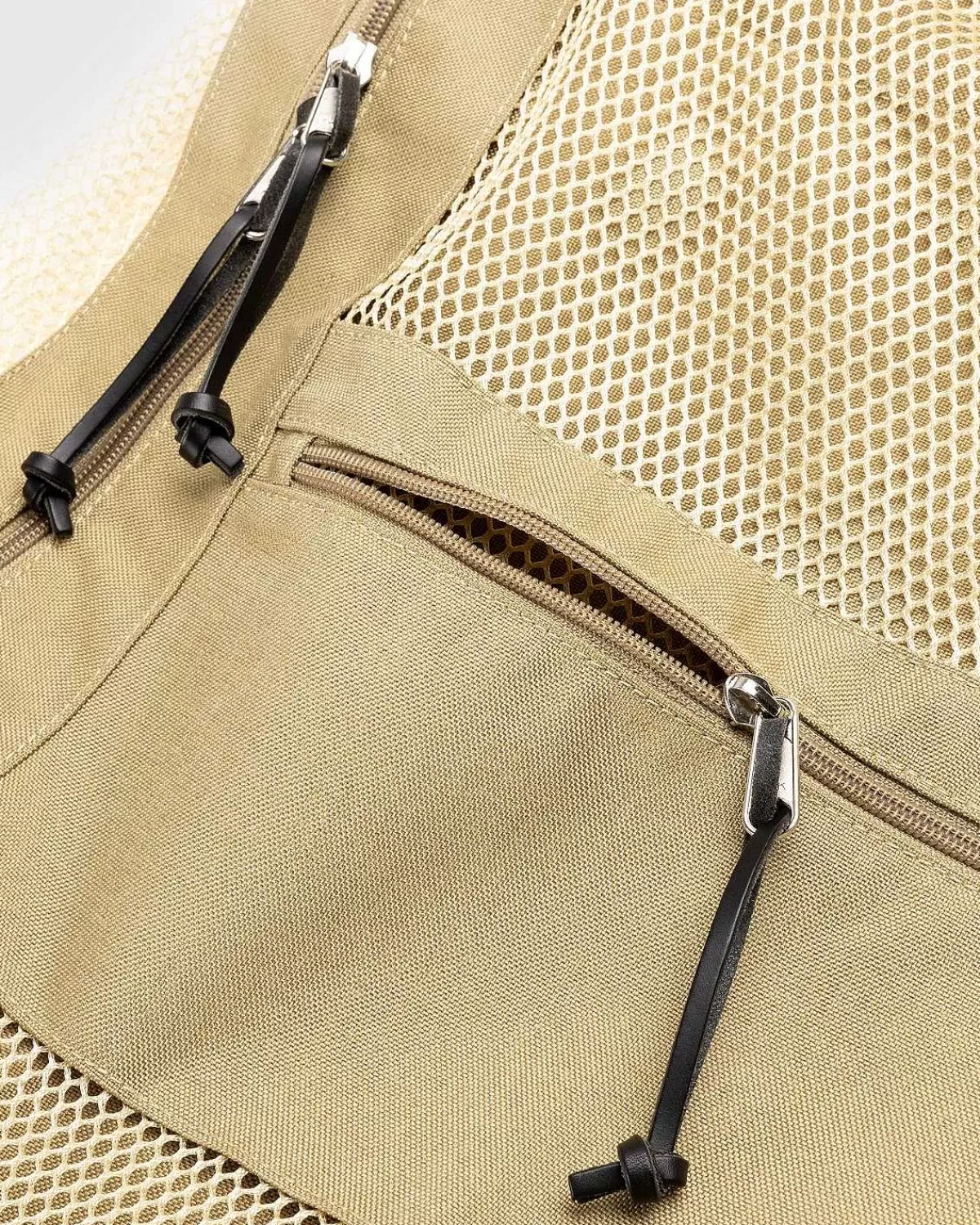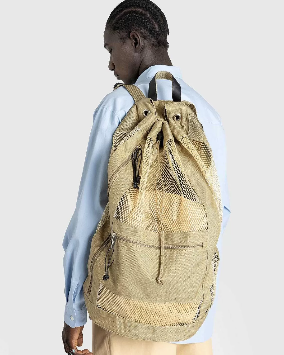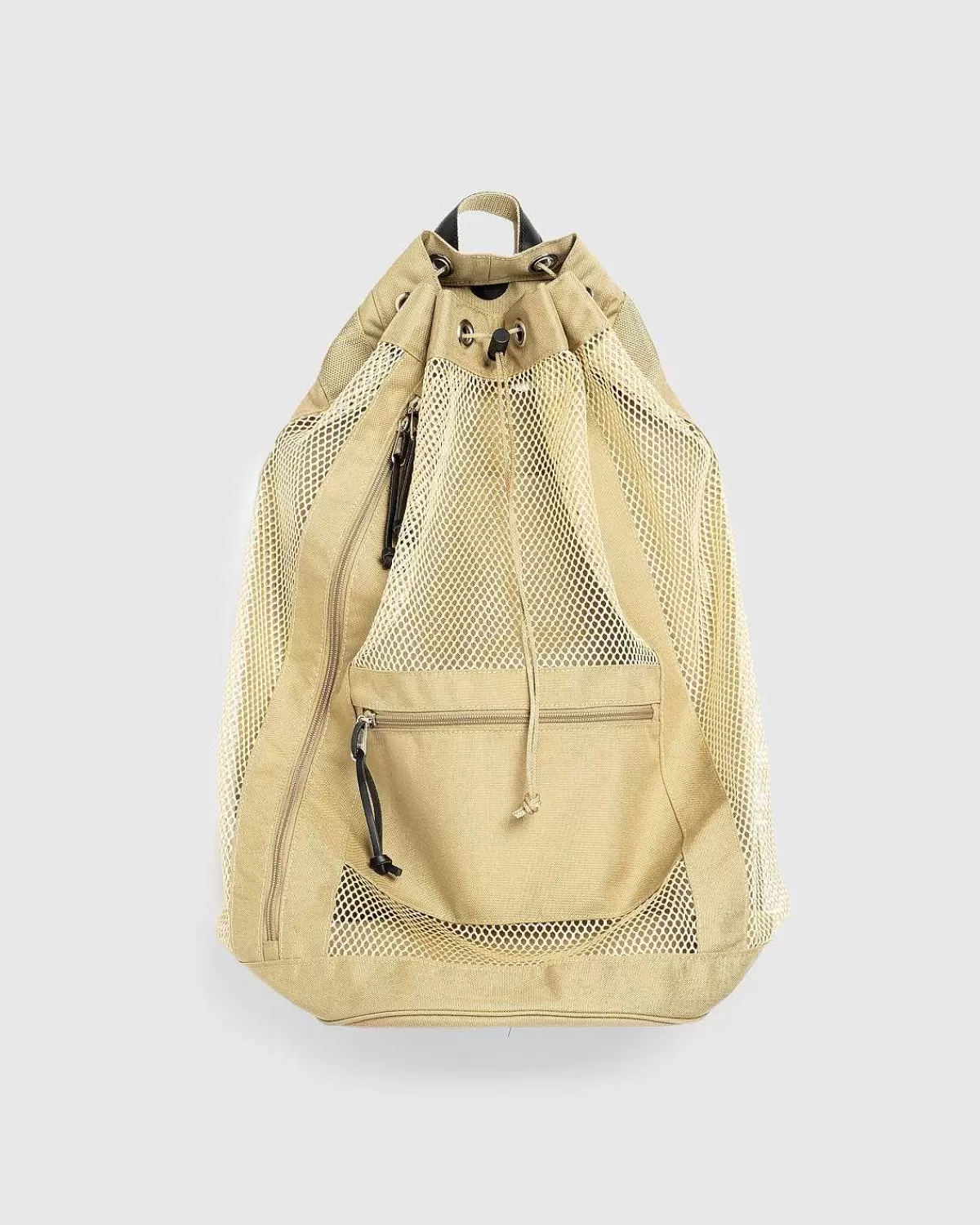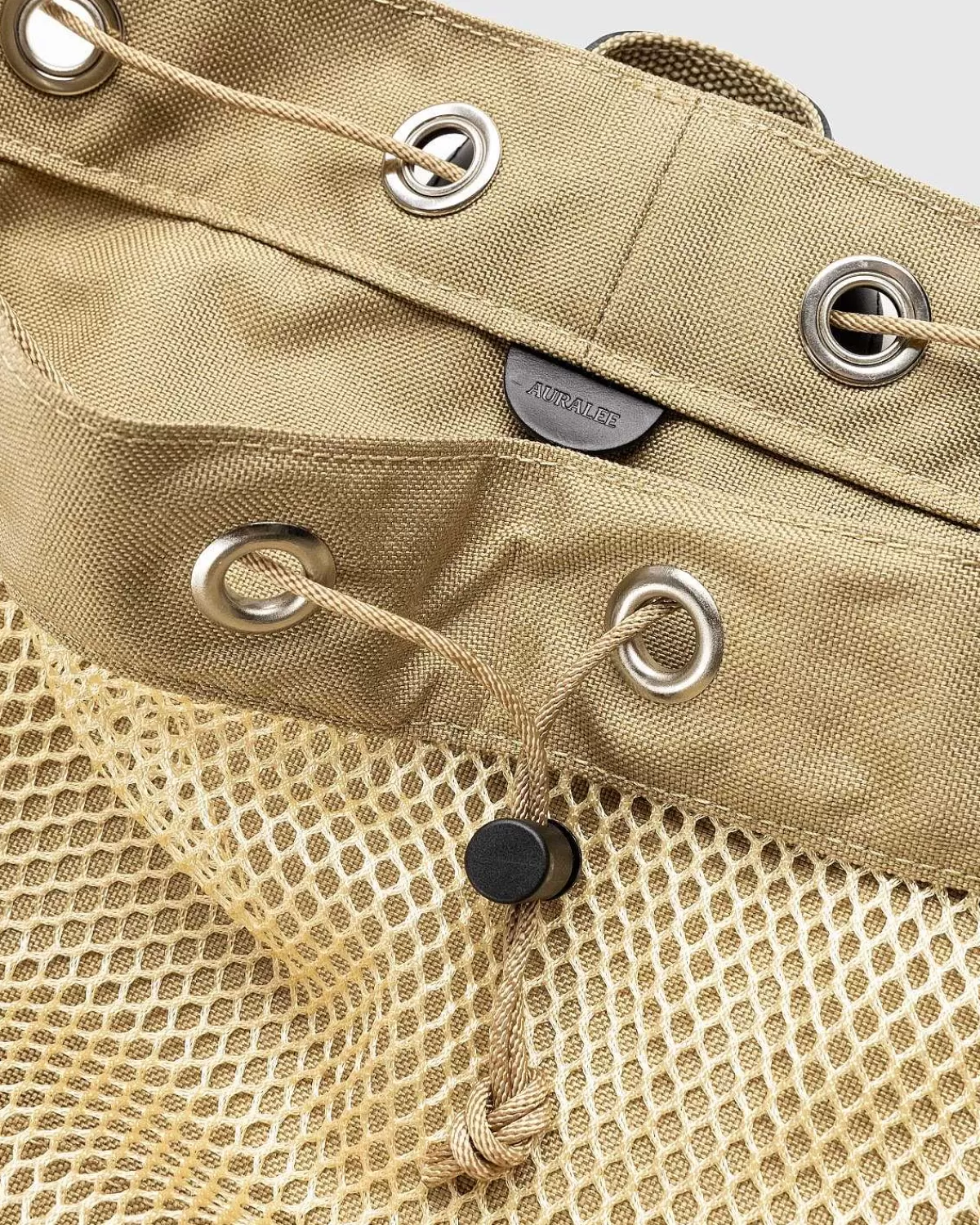 Mesh-Rygsækken Er Produceret Af Aeta Til Auralee Og Er Lavet Af Et Let, Men Alligevel Holdbart Nylonmateriale. Den Har Et Semi-Gennemsigtigt Look, Med Et Traditionelt Tophåndtag Og Justerbare Skulderstropper. Det Øverste Hovedrum Er Udstyret Med Snørelukning, Mens En Fuldlængde Lynlås Er Indbygget På Siden Af Tasken.