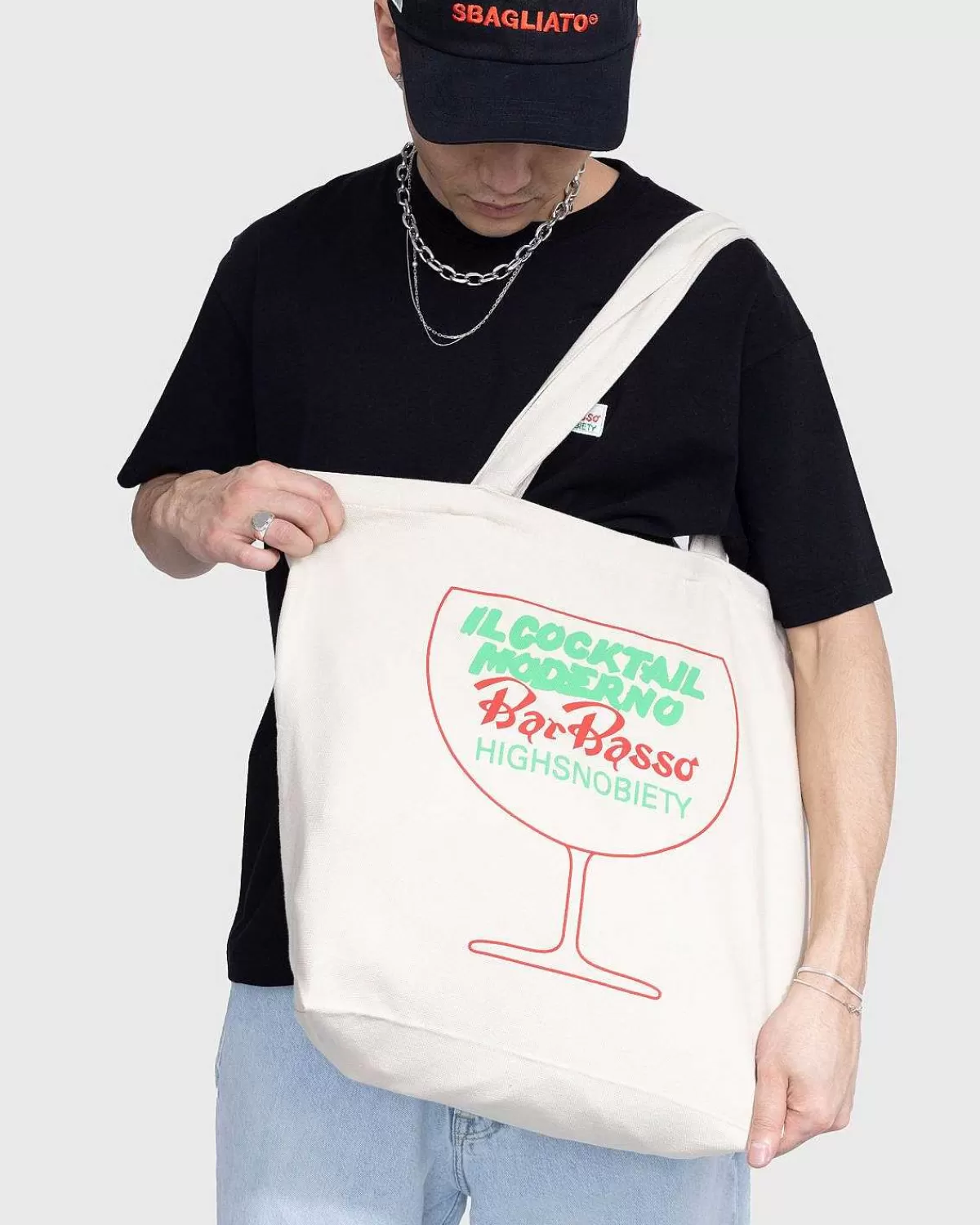 Denne Mulepose, Der Ankommer Som En Del Af Vores Fejring Af Alt Italiensk Til Milano Design Week, Har Et Grafisk Tryk, Der Fremhæver En Af De Ældste Og Mest Indflydelsesrige Cocktailbarer I Milano, Bar Basso. Den Er Kendt Som En Milanesisk Institution Og Er Kendt For Sin Karakteristiske Cocktail Negroni Sbagliato, En Drink Opfundet Af Ejeren Maurizio Stocchetto, Som Serveres I Et Massivt Scenografisk Glas. I Årenes Løb Er Det Historiske Etablissement Blevet Tæt Forbundet Med Byens Kunst- Og Modescener, Hvilket Har Styrket Det Yderligere Som Et Ægte Kulturelt Inventar I Milano.