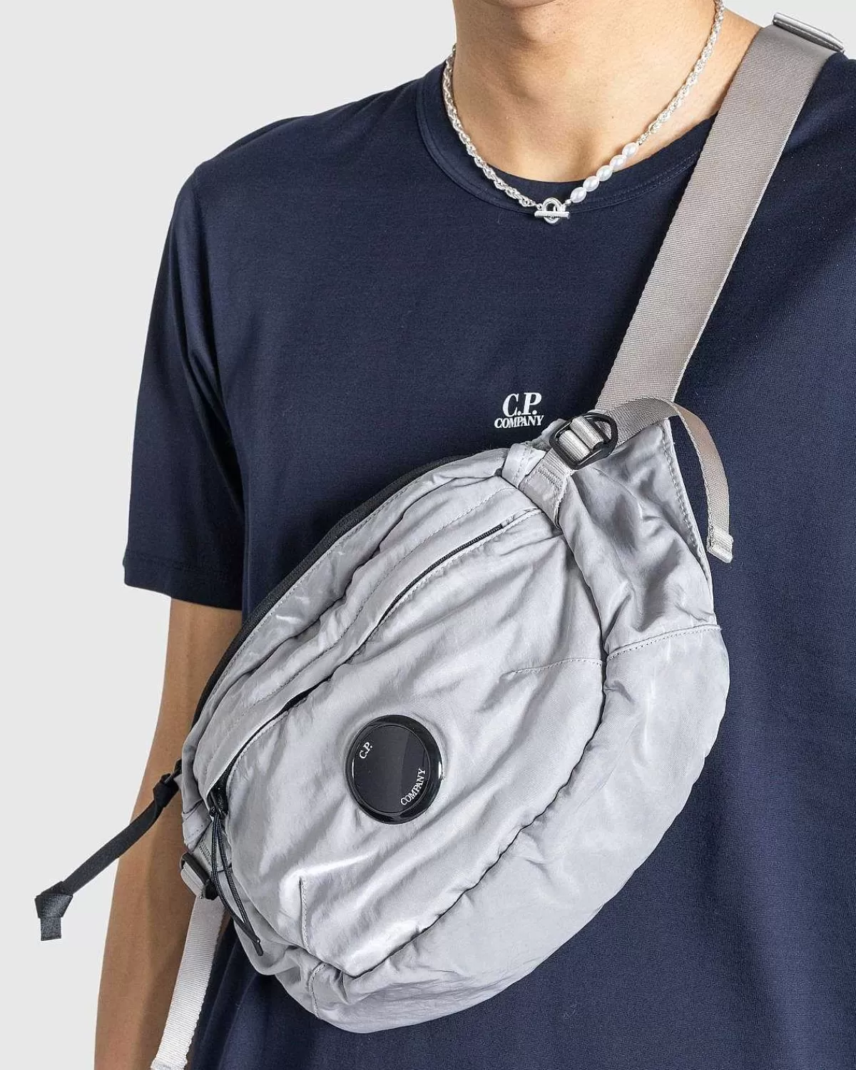 En Kompakt Hverdagsstil, Denne Cp Company Crossbody-Pakke Er Lavet Af En Beklædningsfarvet Nylonsatin I En Holdbar, Vejrbestandig Vævning. Udstyret Med En Justerbar Hurtigspændestrop, Spændejusteringer Og To Sikre Rum, Er Mærkets Varemærkeobjektivdetalje Implementeret På Forsiden For At Fuldende Designet.