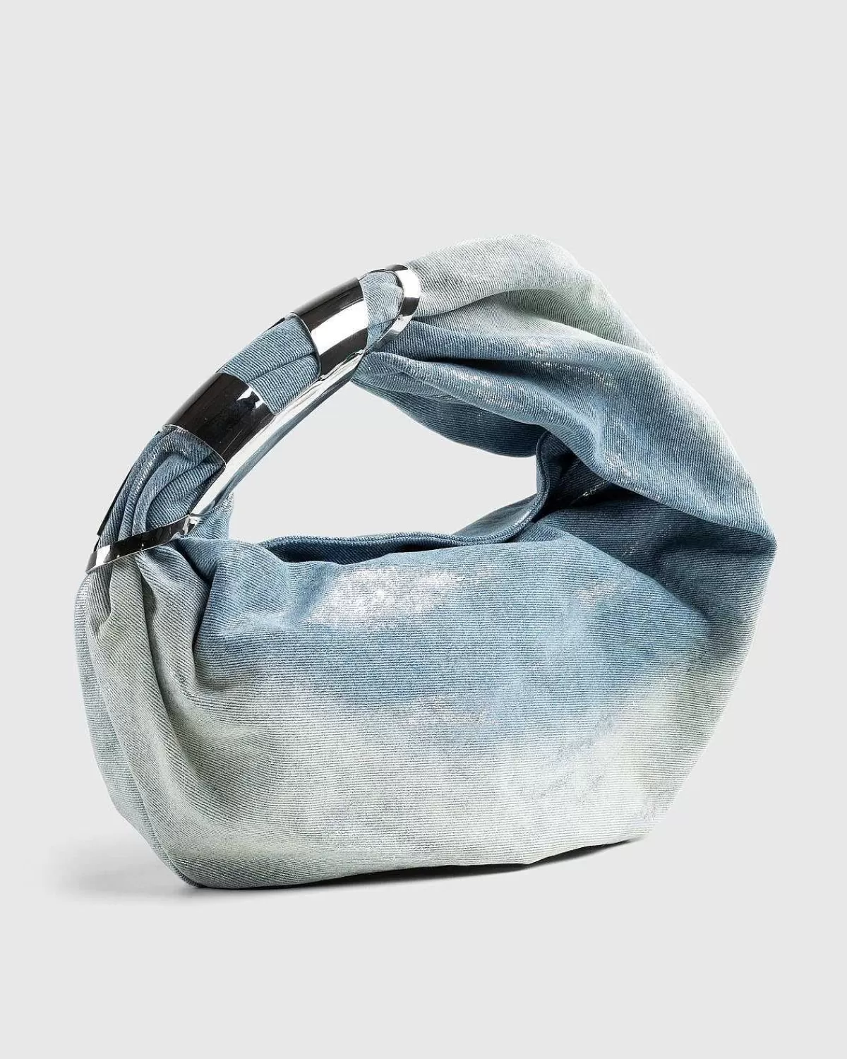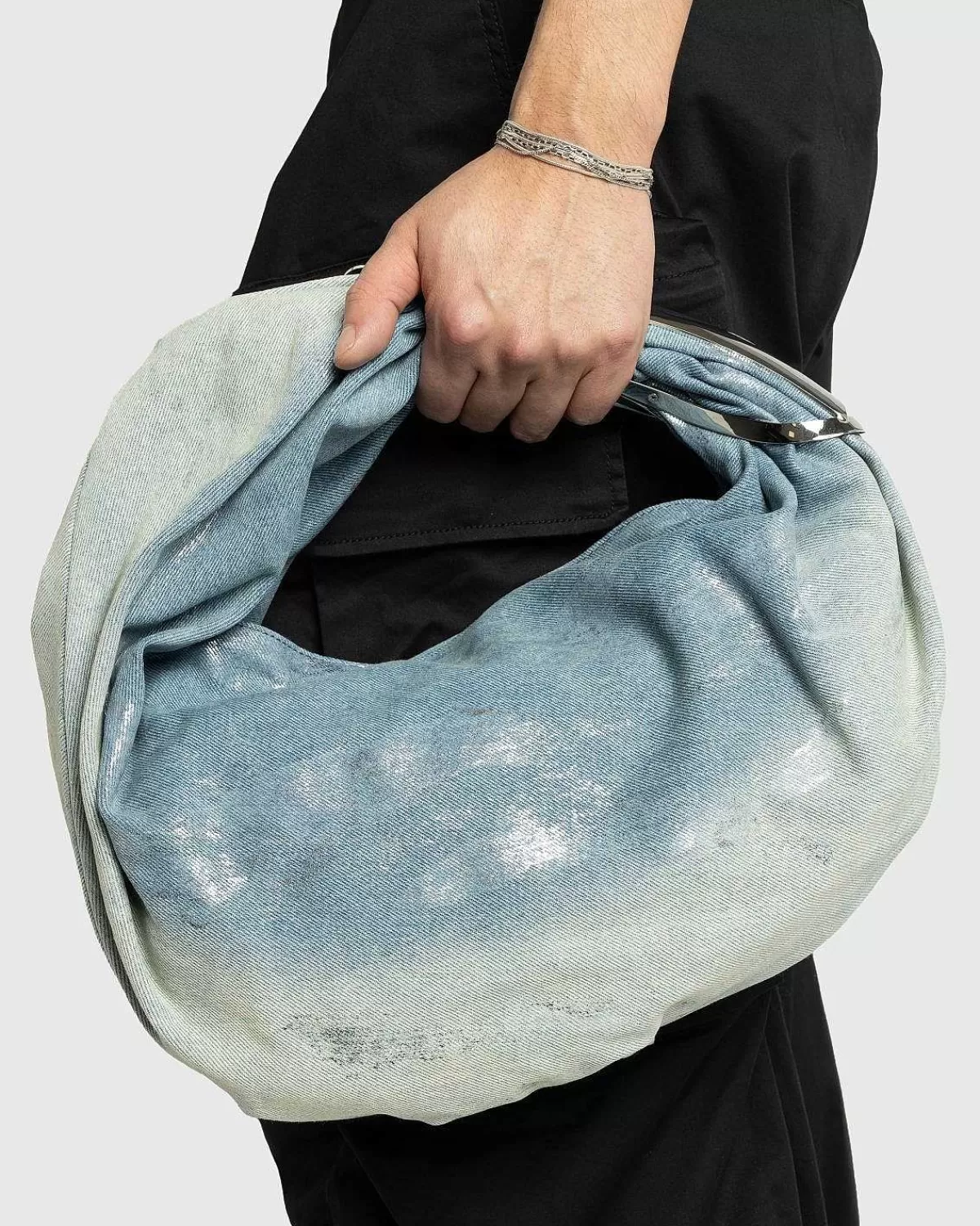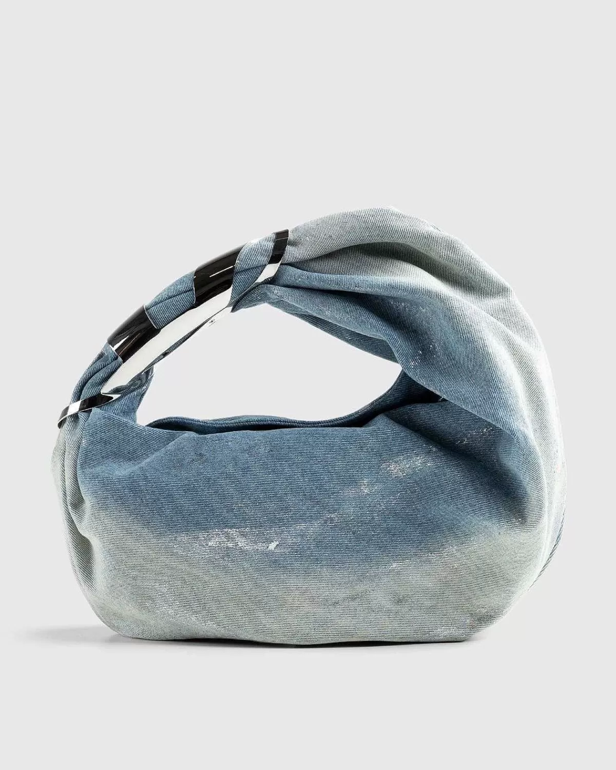 Grab-D Hoboen Er En Karakteristisk Dieselbagagestil, Der Overvejende Er Konstrueret Af Bomuld. Denne Særlige Version Fremviser Et Vasket Denim-Ydre Med En Distressed Effekt, Suppleret Med Sølvfarvet Hardware Og En Sølvfarvet Logoplade. Tasken Er Udstyret Med Skjult Magnetisk Fastgørelse Samt En Skulderrem Til Håndfri Transport.