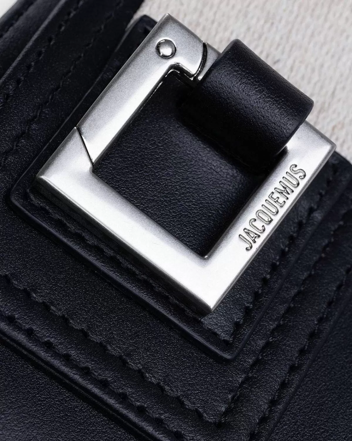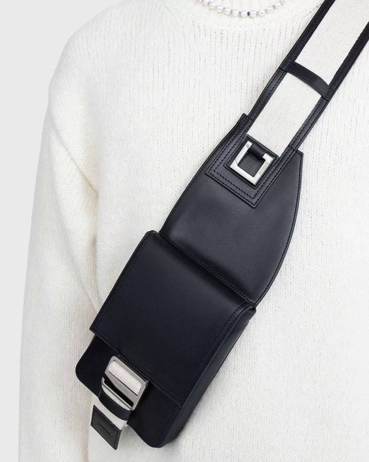 La Banane Cuerda Er En Luksuriøs Røvtaske Udført I Glat Ko-Læder Med Fuld Bomuldsfor. Den Er Udstyret Med En Justerbar Skulderrem Og Har En Magnetisk Klaplomme Med Et Metalspænde, En Sidelomme Med Lynlås Og En Indvendig Laplomme. Tasken Leveres Med En Indgraveret Firkantet Karabinhage Og Er Yderligere Udsmykket Med Et Præget Jacquemus-Logo.